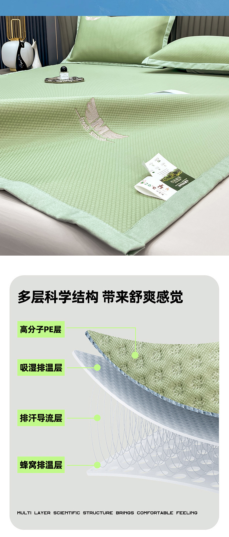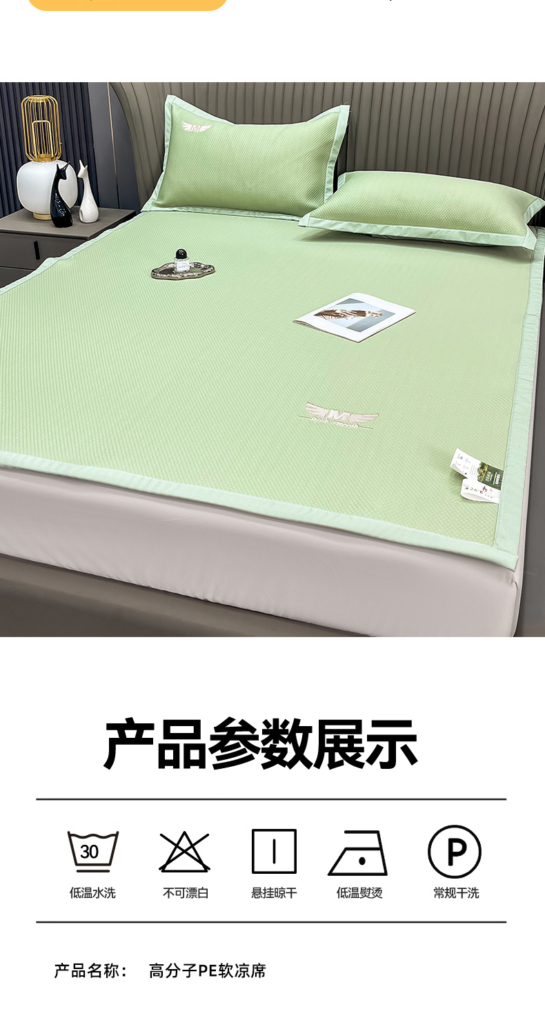 • 91家纺网 家纺一手货源 找家纺 瑞兴纺 2025新款高分子PE软凉席绣花款床单款 绣花床单款-格调-绿