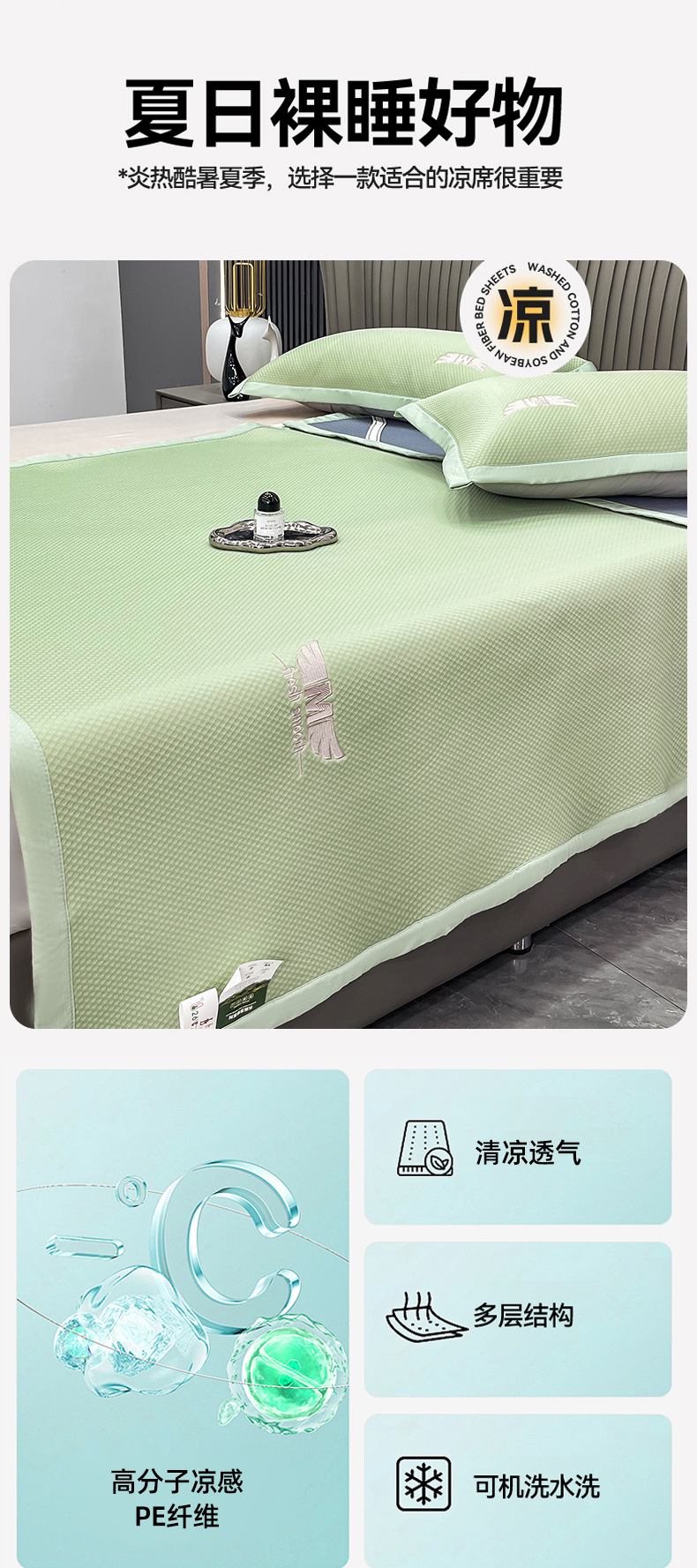 180*200cm凉席三件套