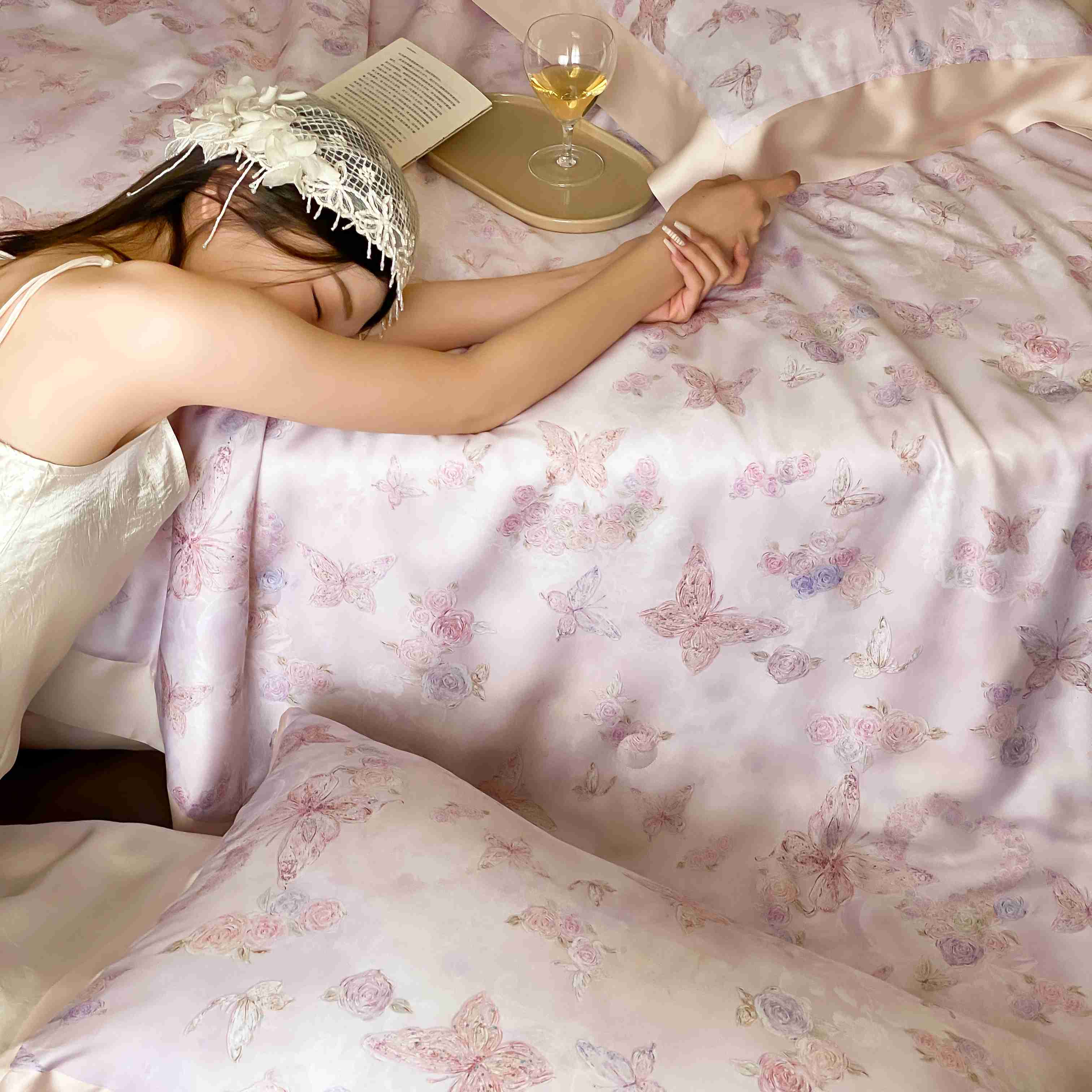 (总)太古汇家居 2025新款桑真丝提花+印花系列四件套,琉璃梦境-紫,琉璃梦境-粉,星光蝶影-淡绿,星光蝶影-粉