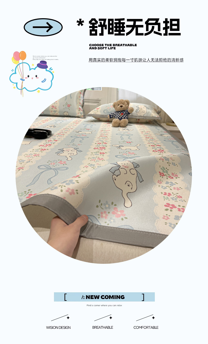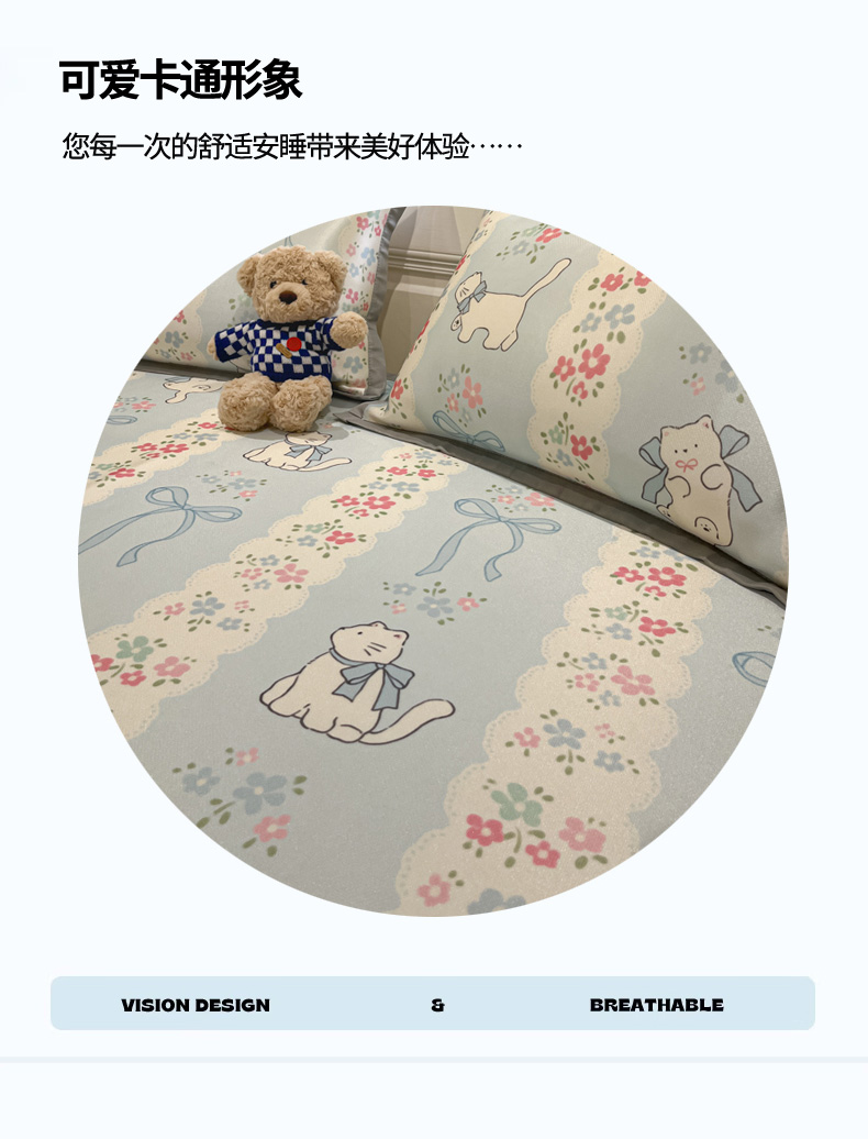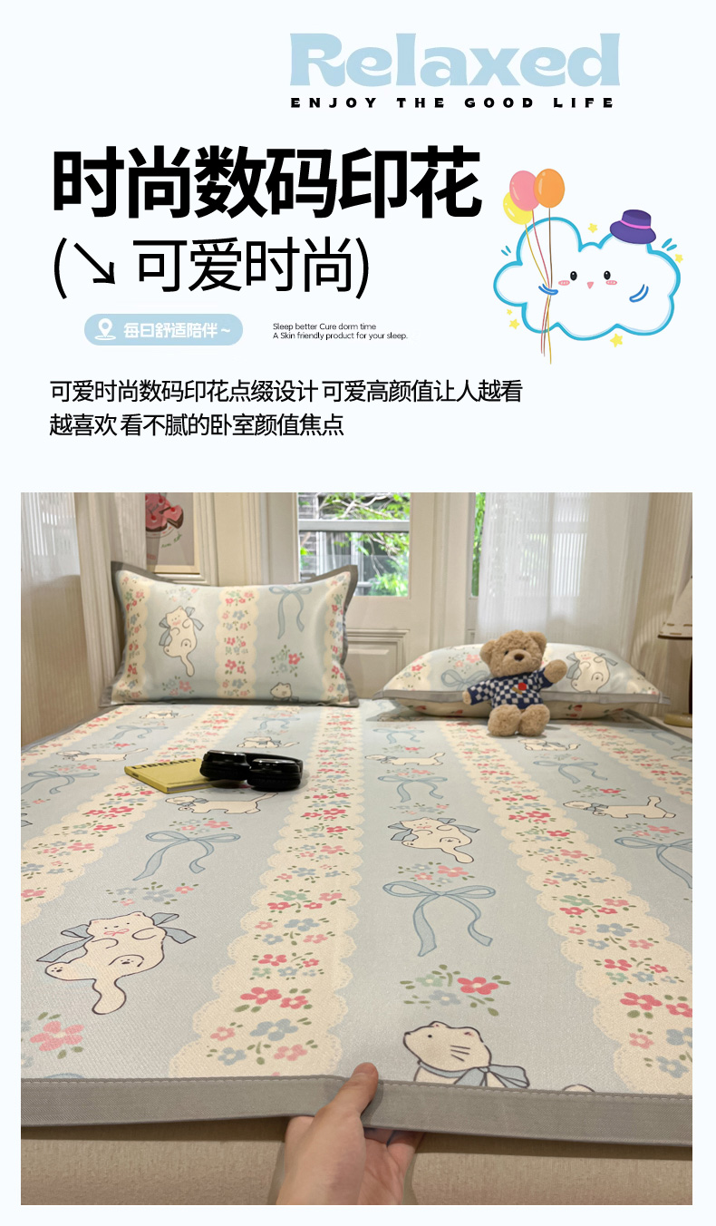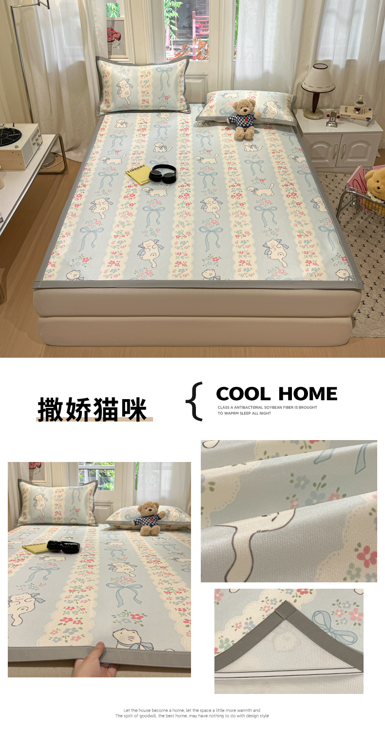 商品名称:慕澄家纺 2025新款小清新萌宠系列碳光冰丝凉席 撒娇猫咪
