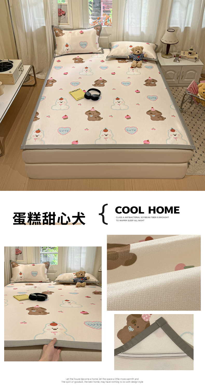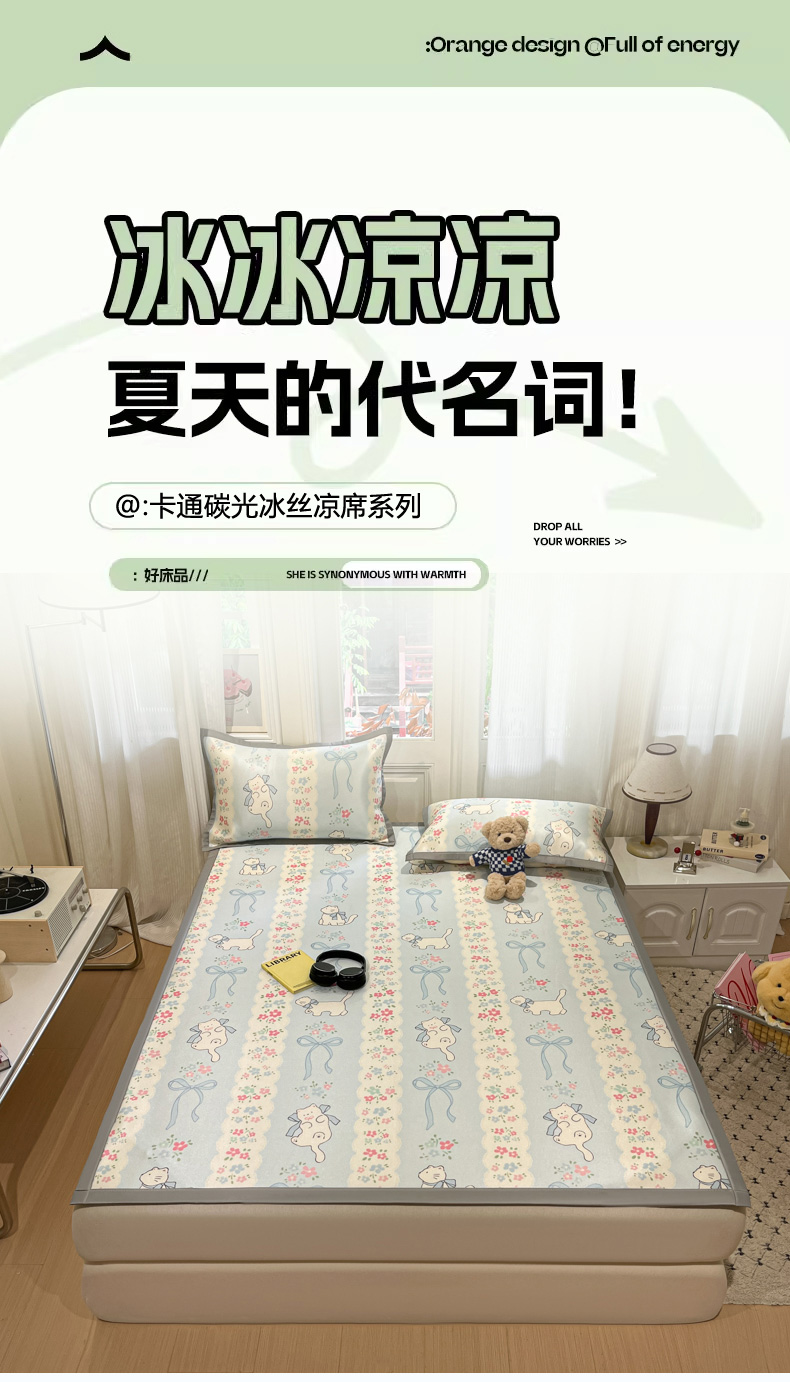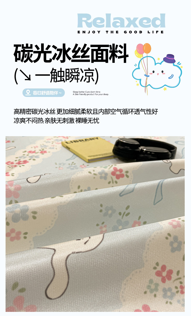 商品名称:慕澄家纺 2025新款小清新萌宠系列碳光冰丝凉席 撒娇猫咪