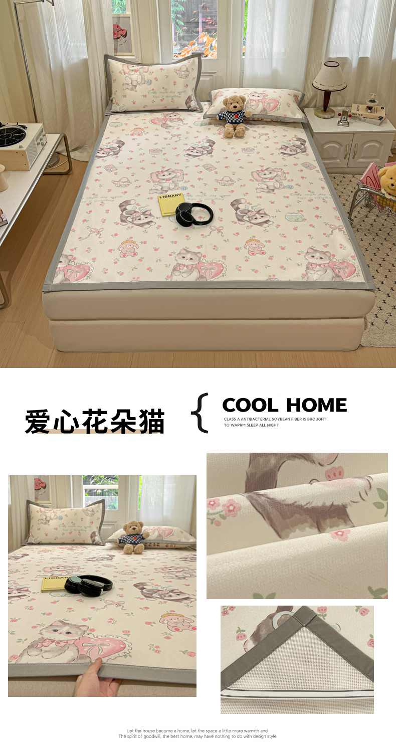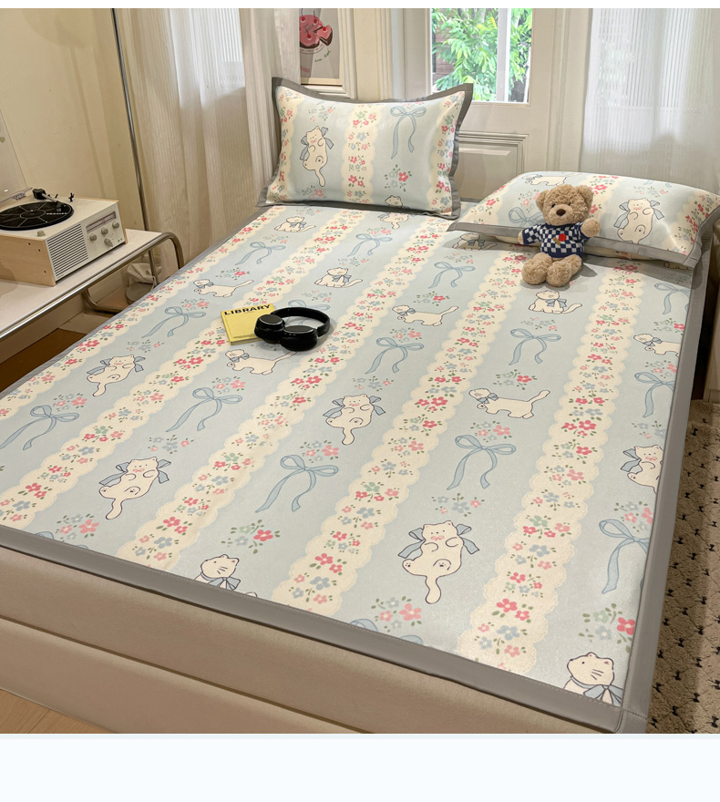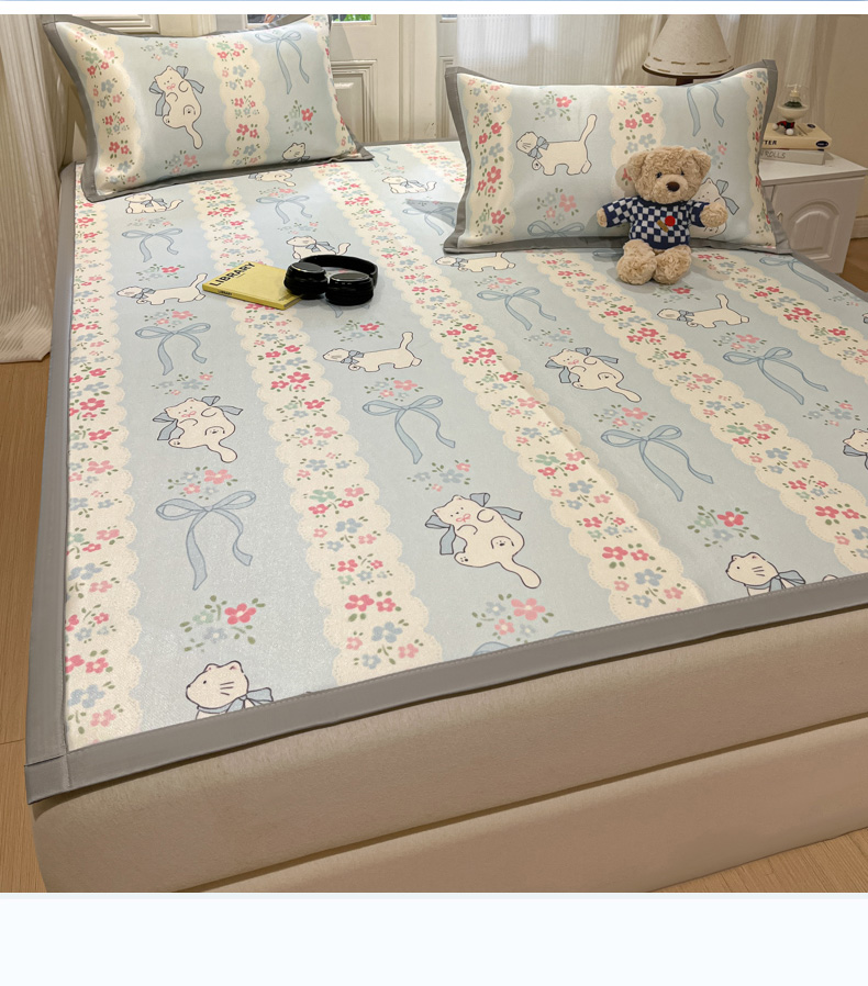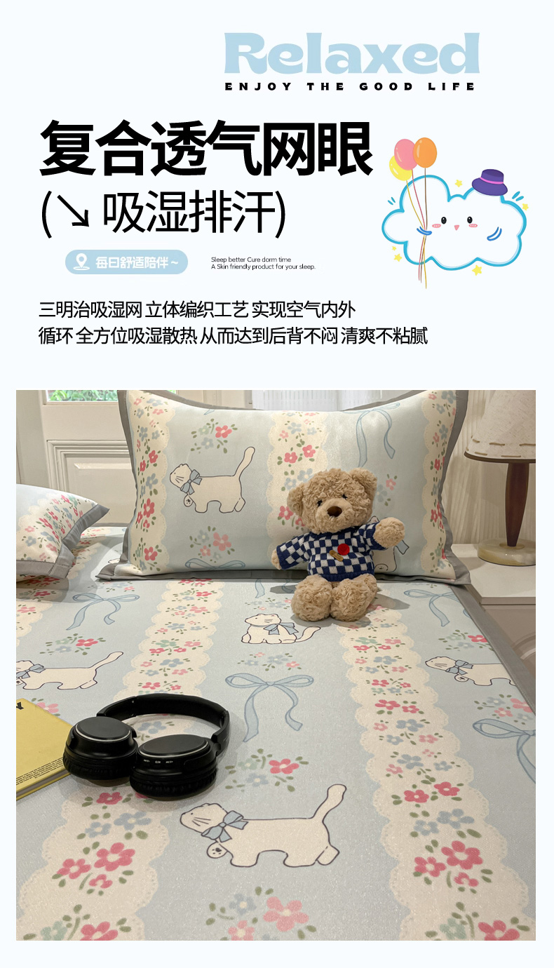 慕澄家纺 2025新款小清新萌宠系列碳光冰丝凉席 撒娇猫咪