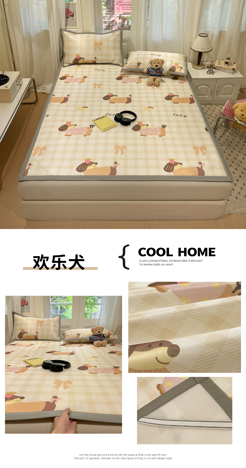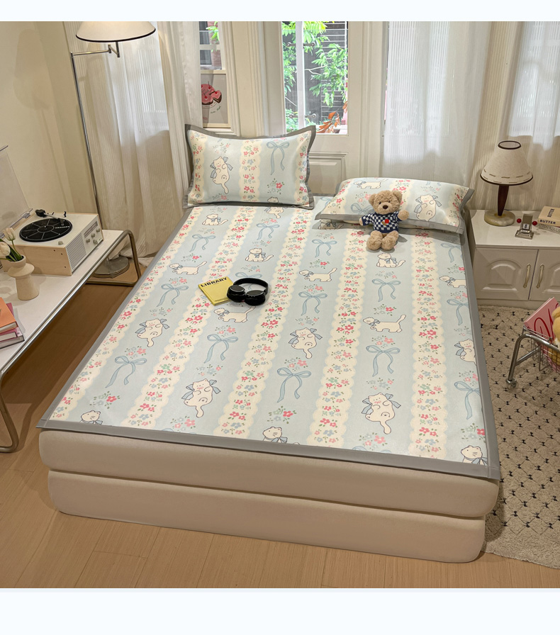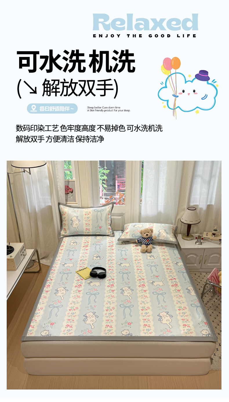 慕澄家纺 2025新款小清新萌宠系列碳光冰丝凉席 撒娇猫咪