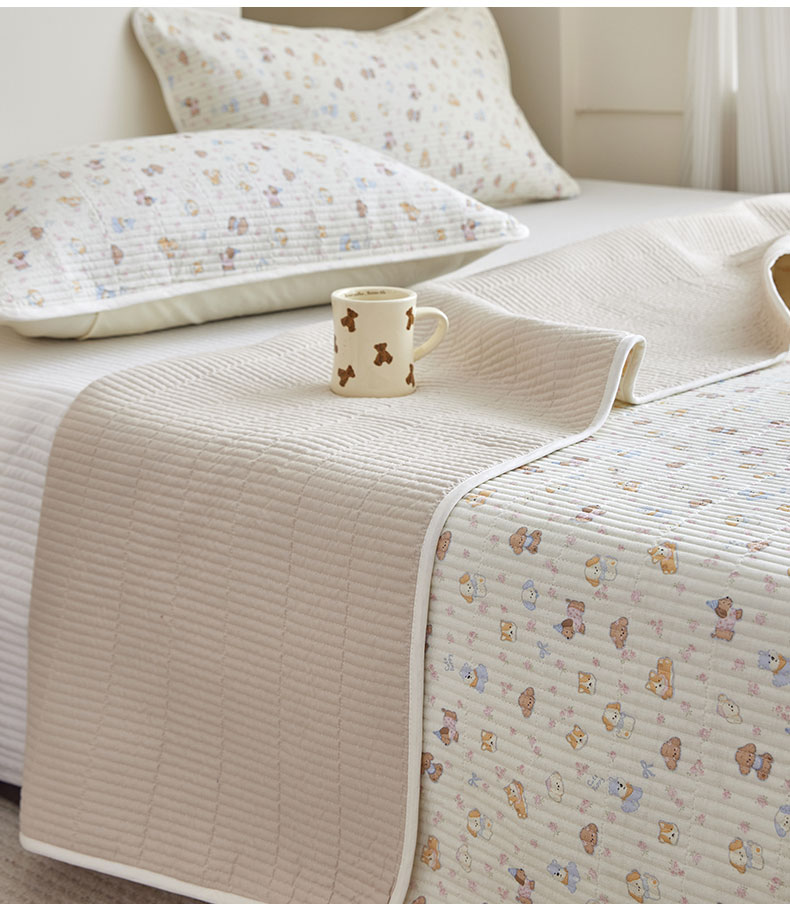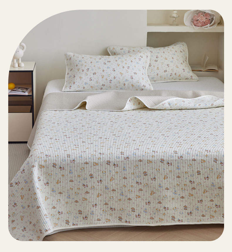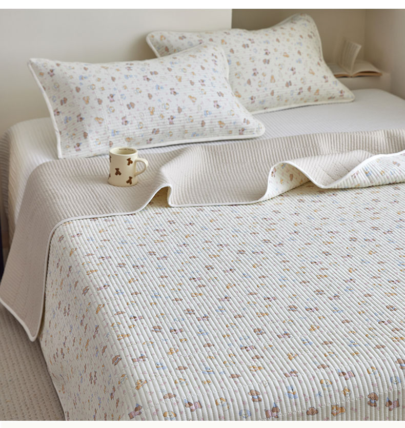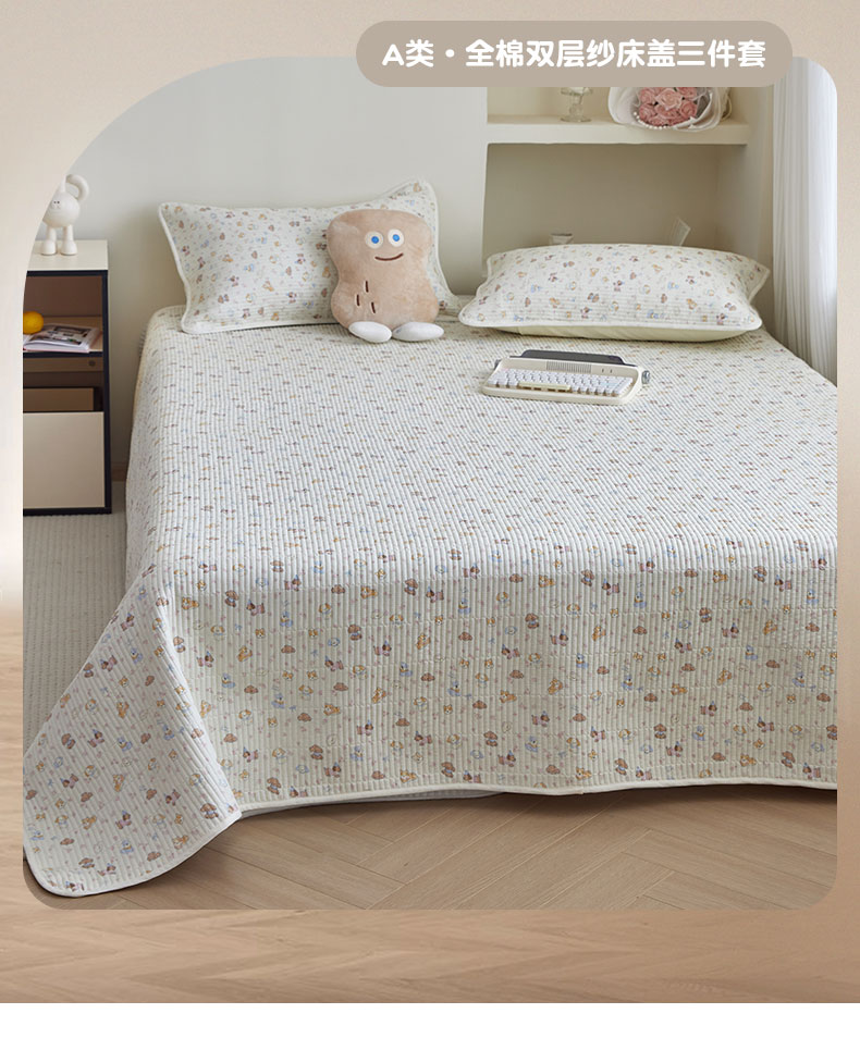 (总)亿梵家居 2025新款全棉纯棉双层纱床盖三件套A类母婴级纯棉床盖炕盖夹棉床单,韩系小熊-蓝,卡通乐园-米,梅林春晓,素锦-咖,云溪之镜-紫,卓言-灰