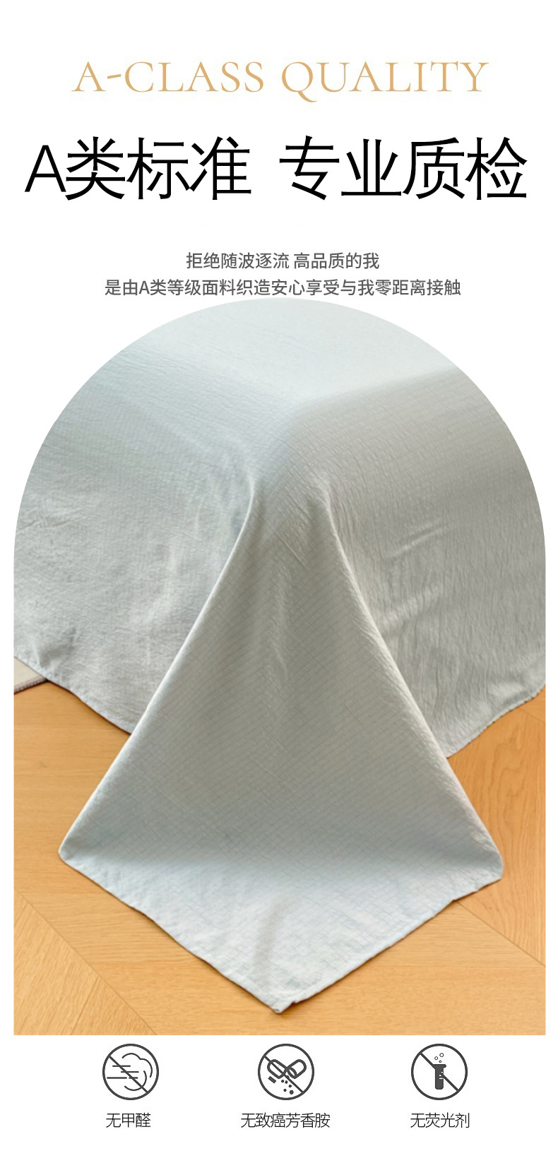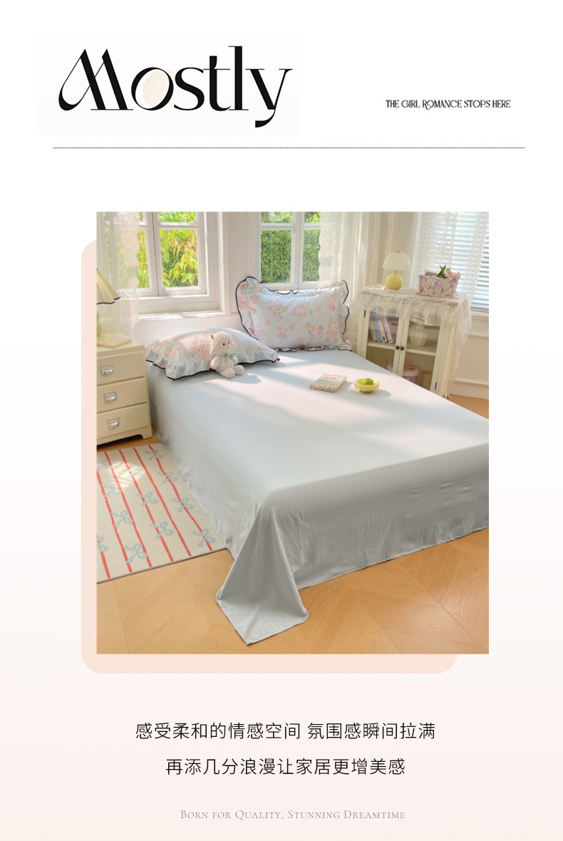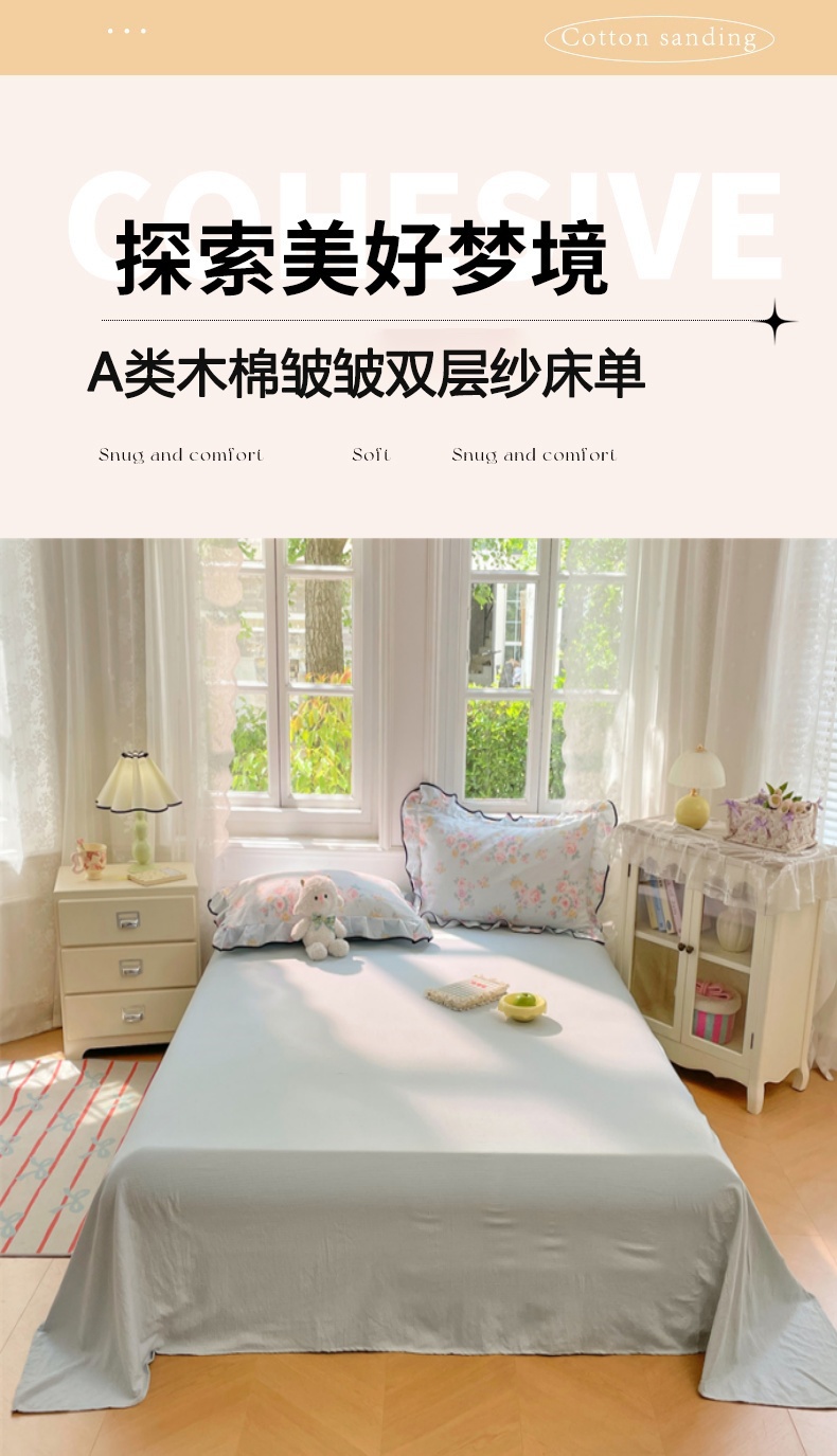 商品名称:梦舒羽 2025新款皱皱双层纱床单宿舍1.2m防尘床单 皱皱天蓝