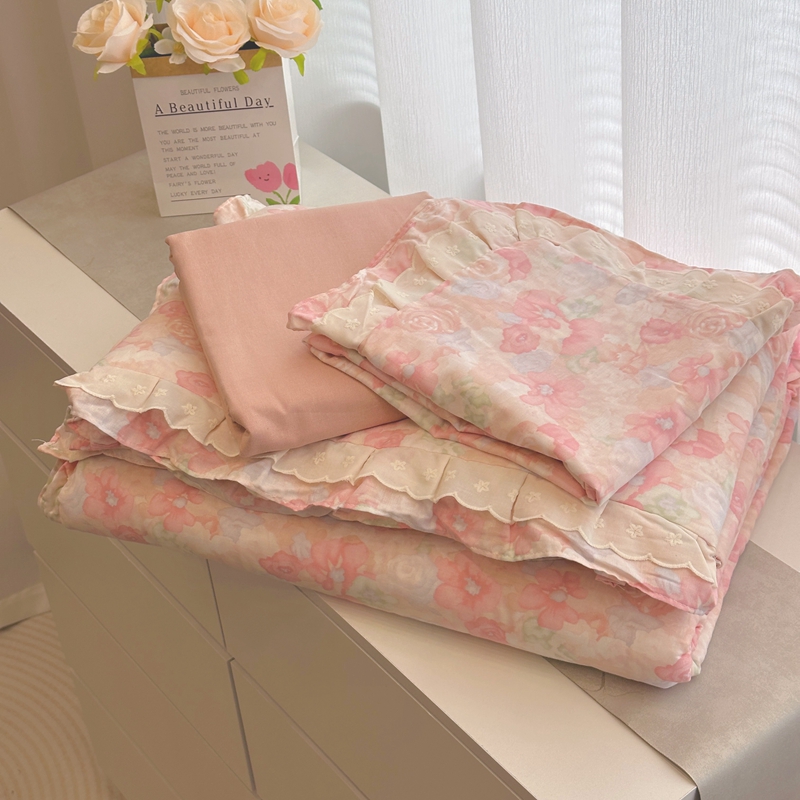 当前位置: 91家纺网 > 商品网购 > 床品套件 > 四件套 > 夏被四件套 > 黛馨 2025春夏新款全棉纯棉A类双层纱工艺款夏被夏凉被空调被四件套双花边款 梨泰院