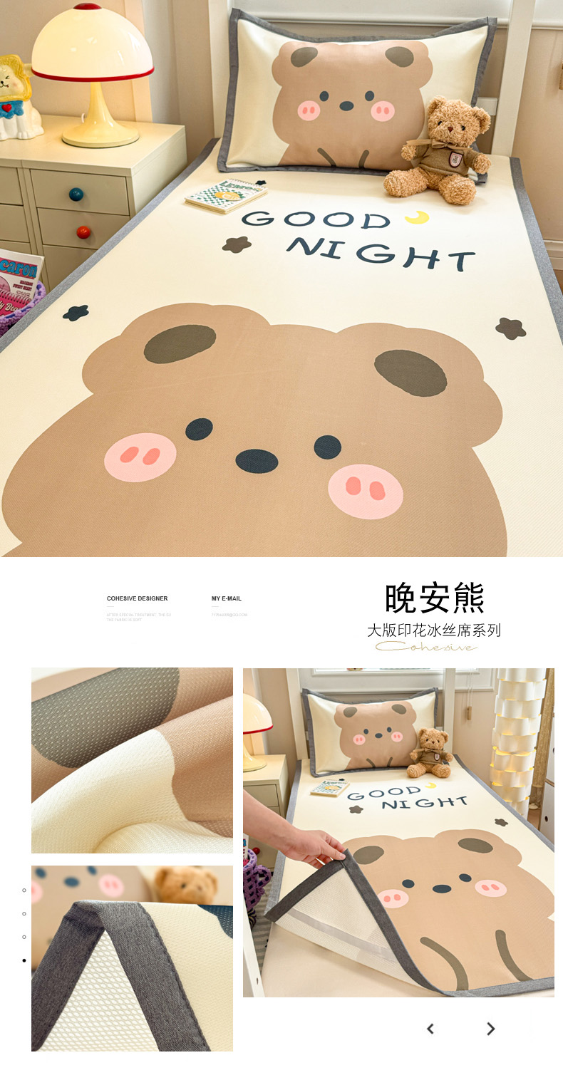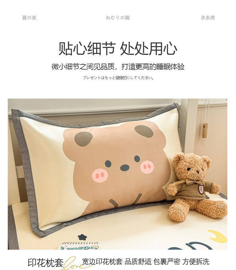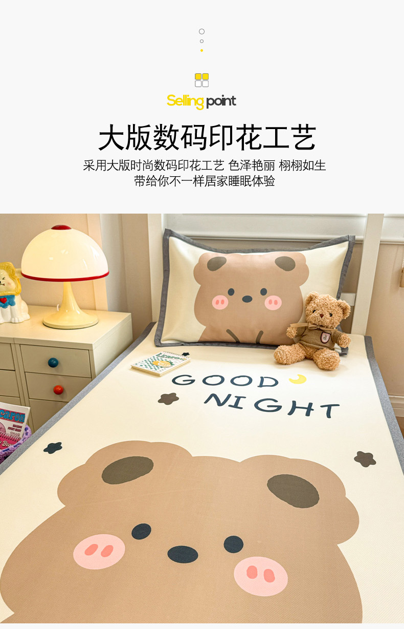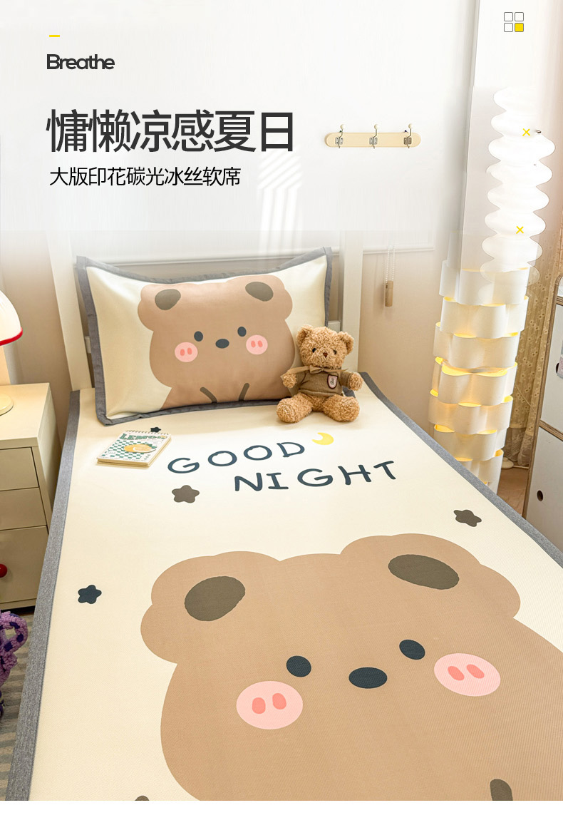 商品名称:柒月家居 2025新款大版数码印花冰丝席(学生床) 晚安熊