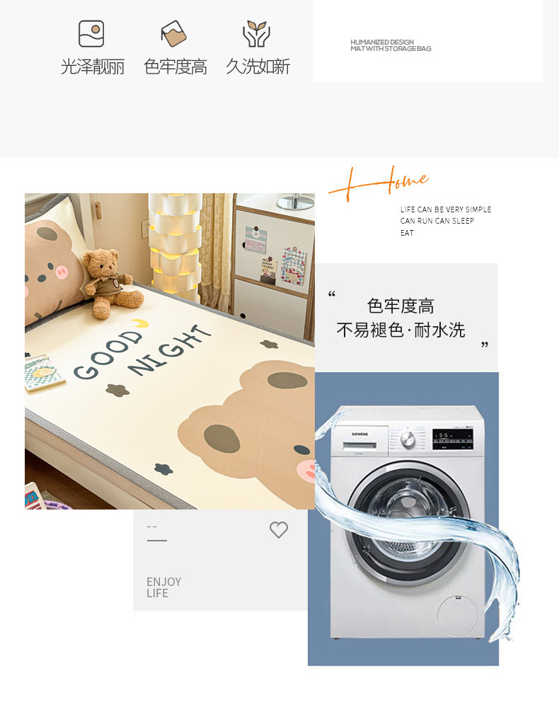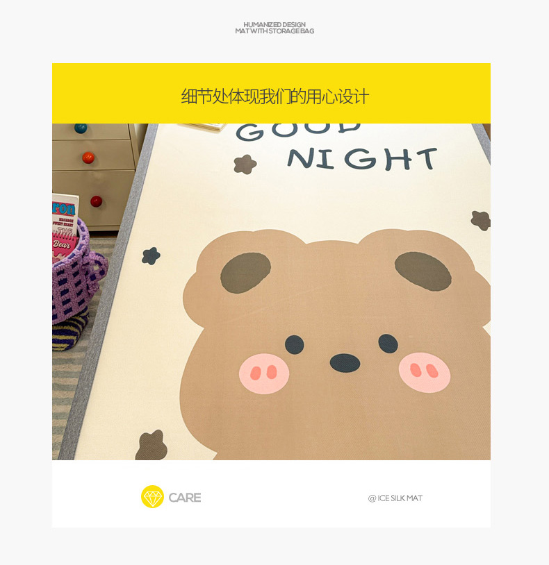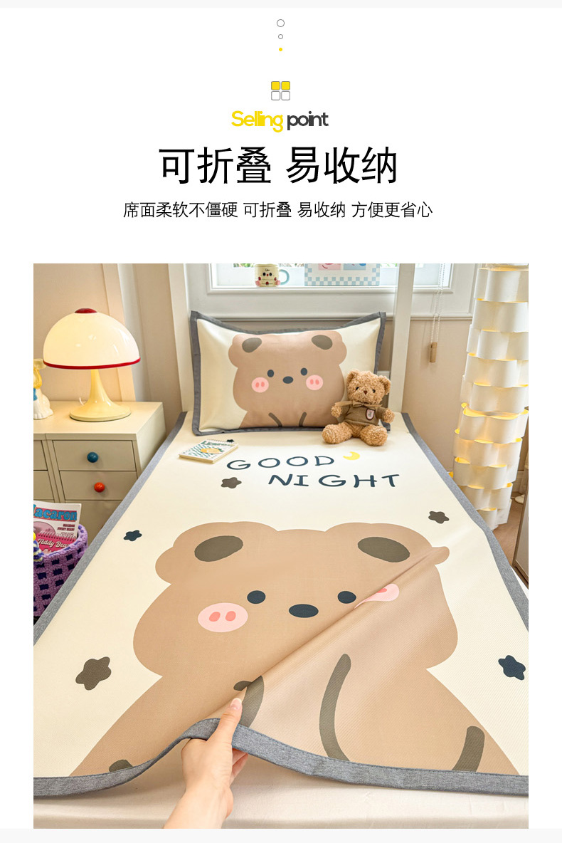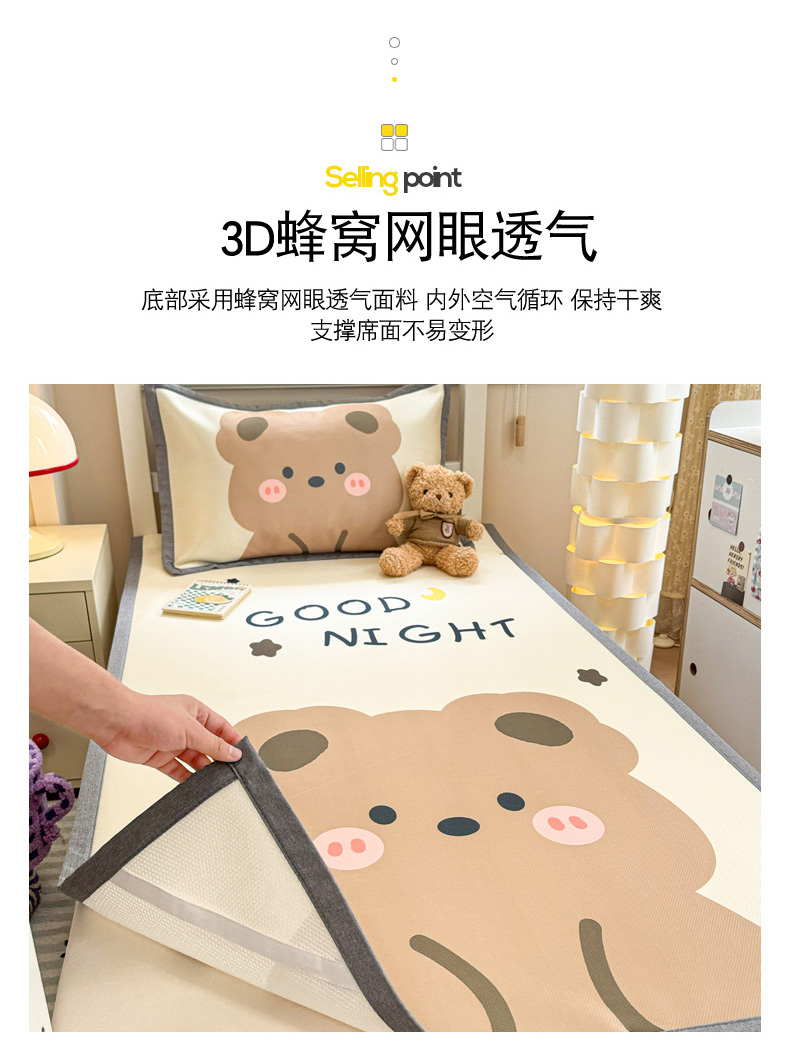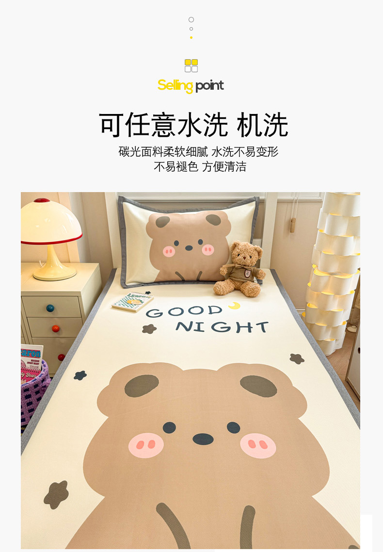商品名称:柒月家居 2025新款大版数码印花冰丝席(学生床) 晚安熊
