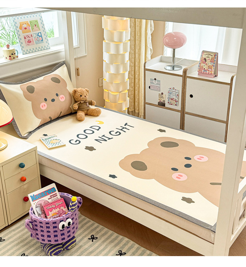 柒月家居 2025新款大版数码印花冰丝席(学生床) 晚安熊