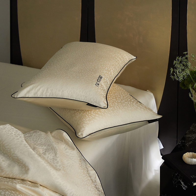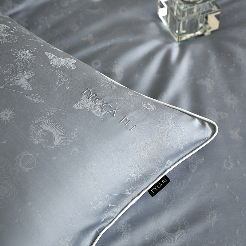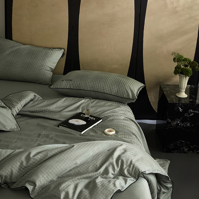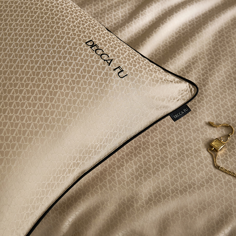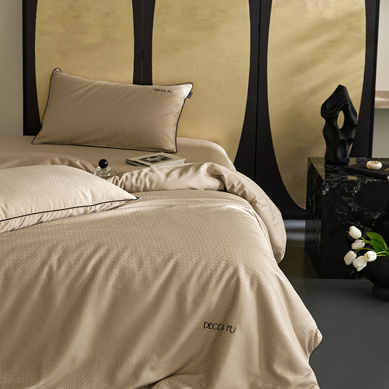 群鹿蚕丝羽绒馆 2025新款天丝棉提花银线刺绣嵌条麻绳工艺-铂金简奢款四件套 弦月-京华驼