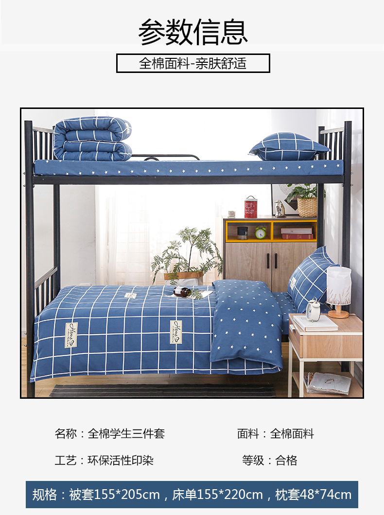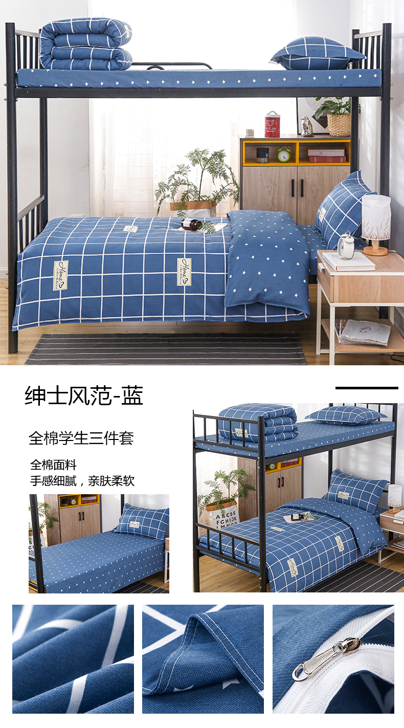 当前位置: 91家纺网 > 商品网购 > 床品套件 > 三件套 > 乐旗 2025新款全棉12868学生宿舍三件套纯棉六件套装 绅士风范-蓝