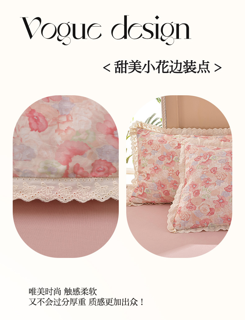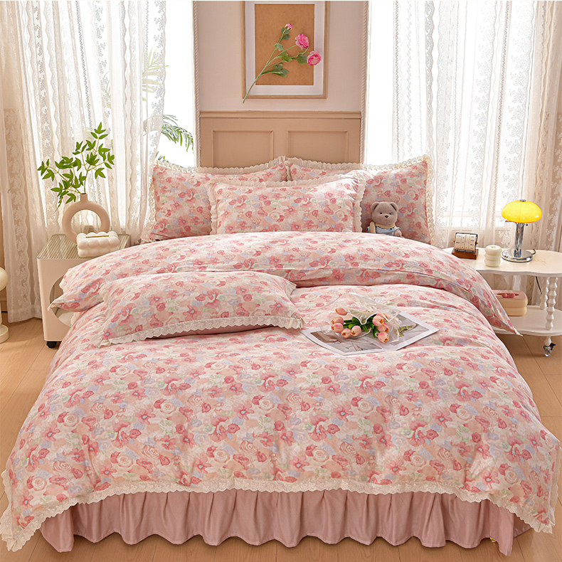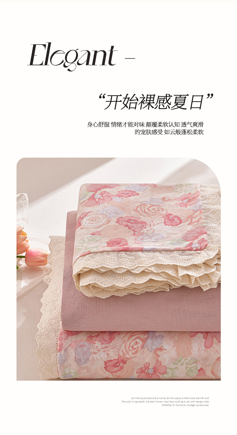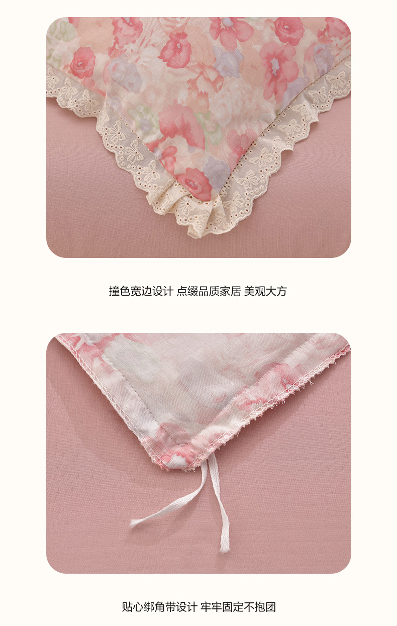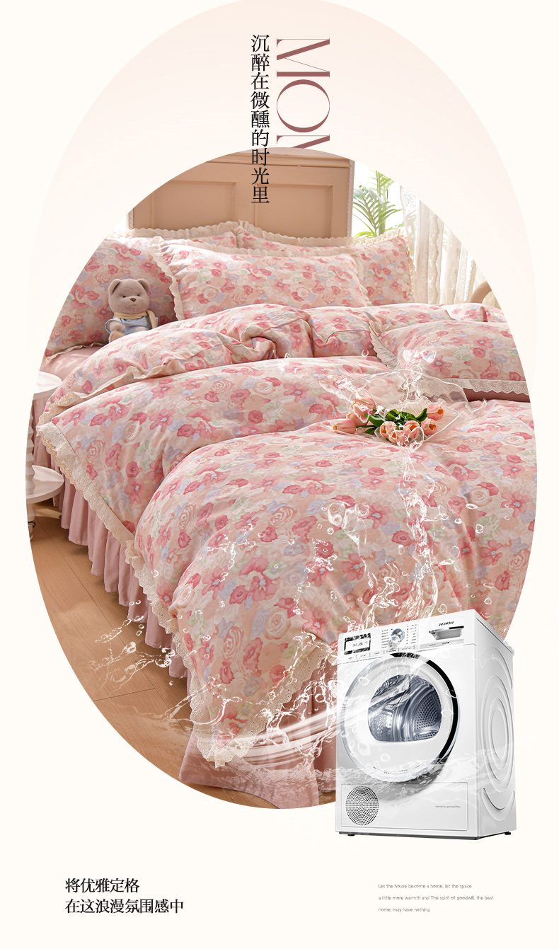 商品名称:绘萱家居 2026春夏新款纯棉100%全棉双层纱镂空花边工艺款床裙四件套 CQ花叮