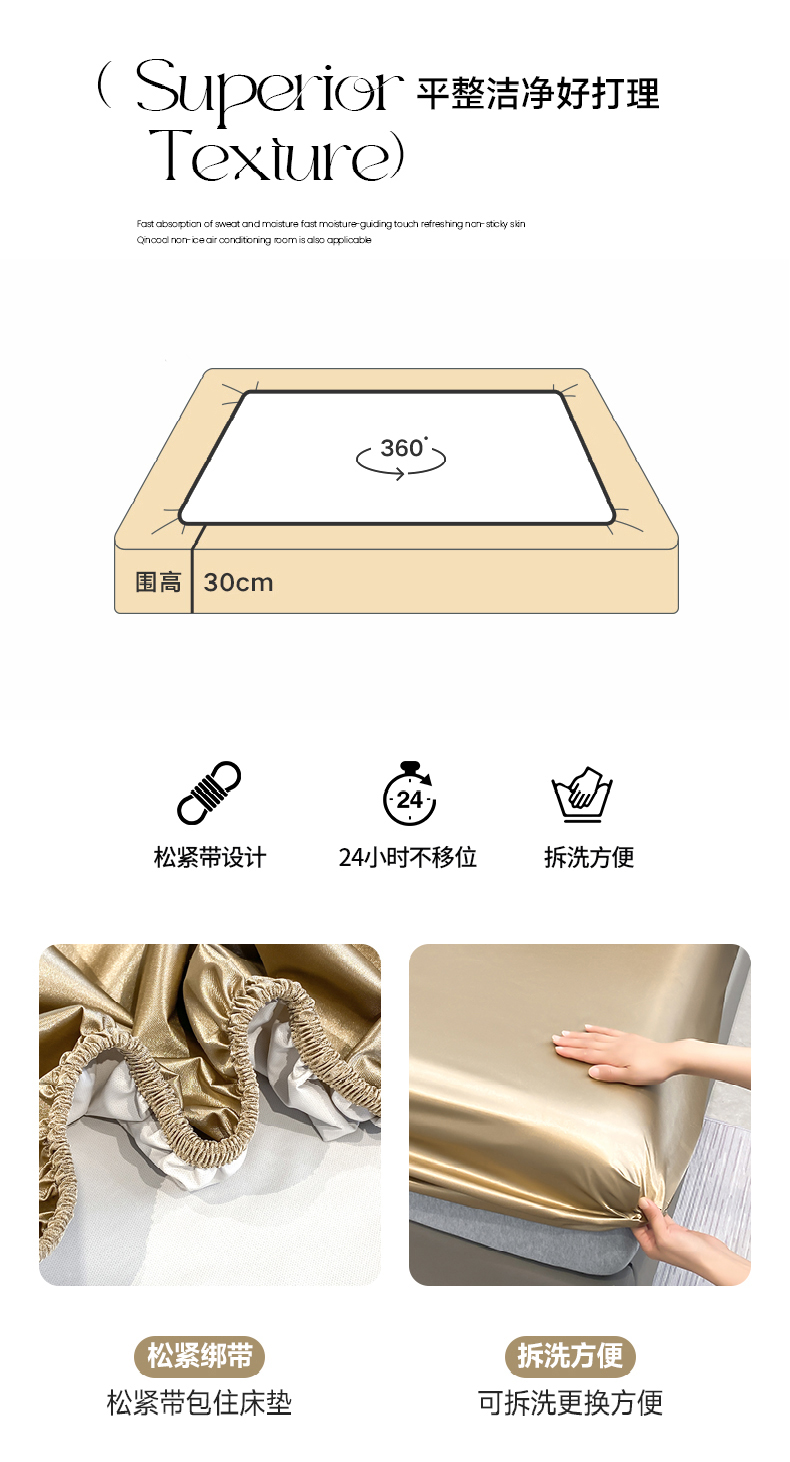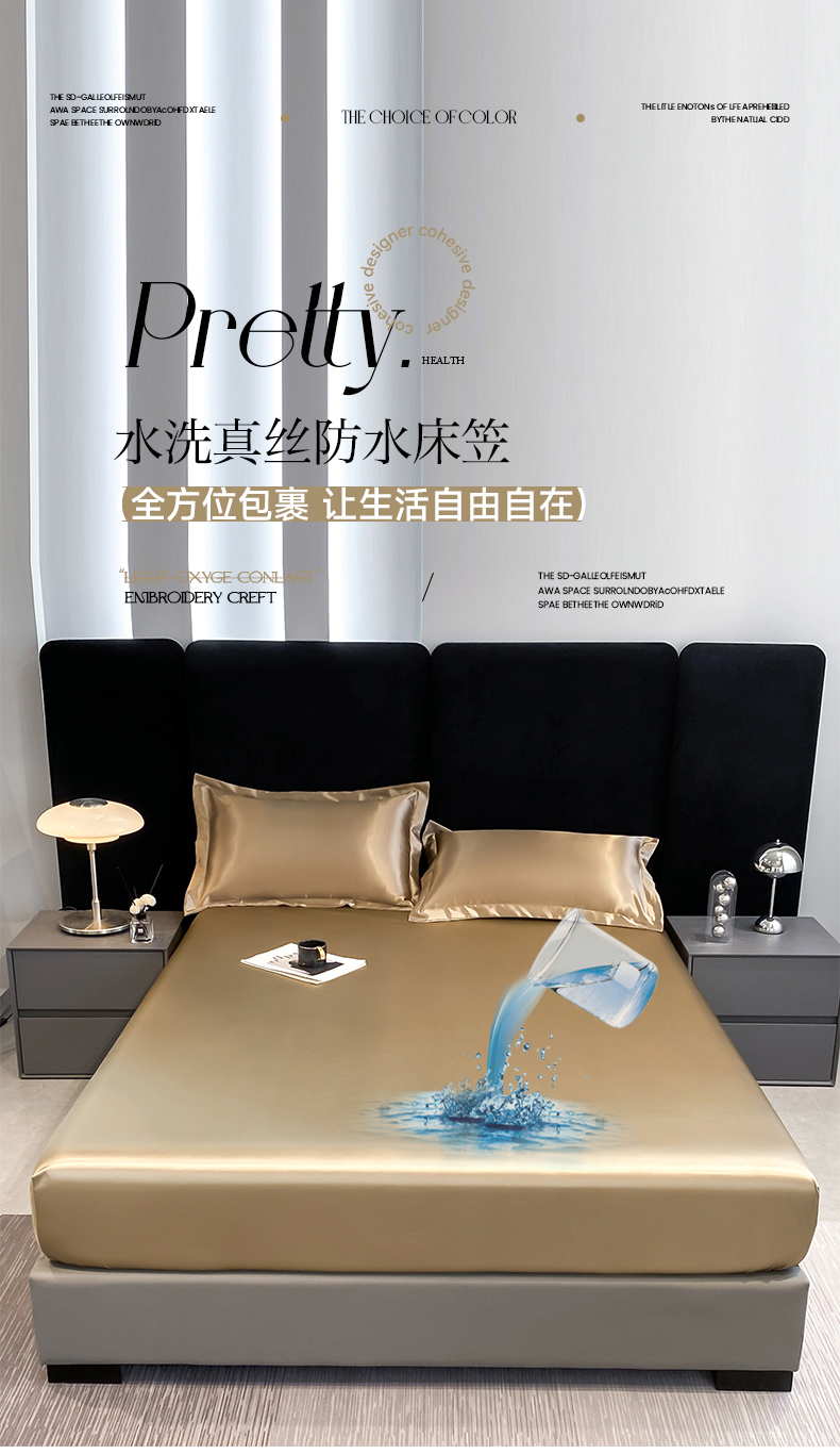 • 91家纺网 家纺一手货源 找家纺 合纵跨境工厂 2025新款水洗真丝床笠隔尿床单床垫保护套跨境外贸JIT一件代发TEMU亚马逊希音包过核价TPU防水床笠 \" 香槟金