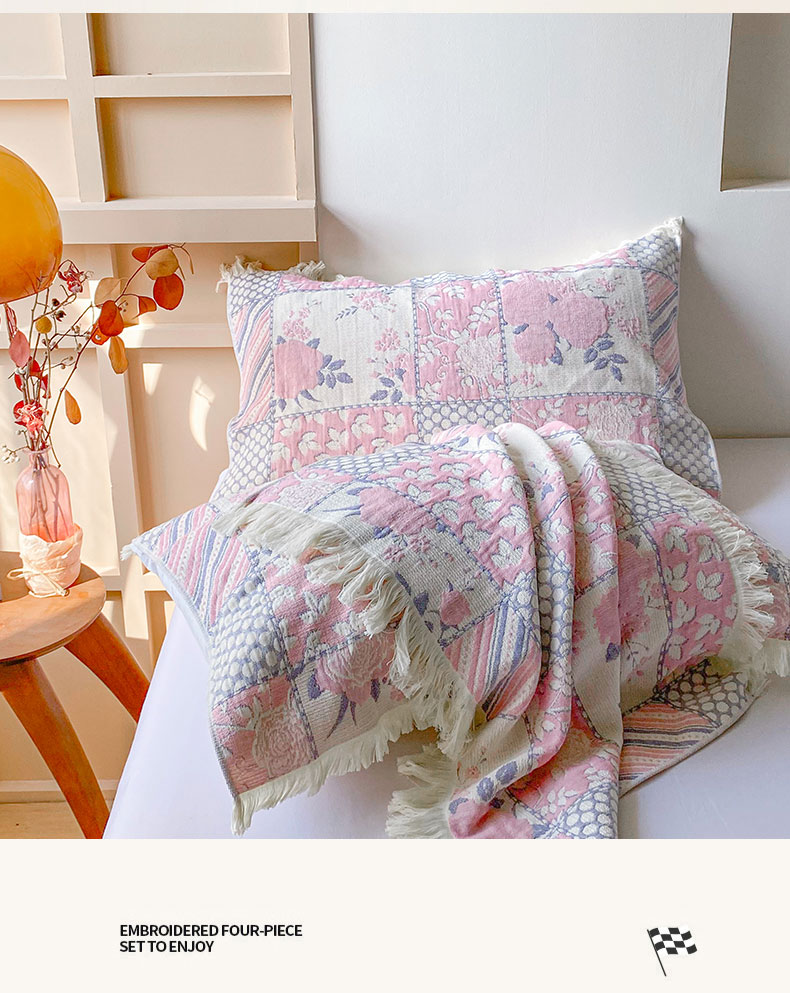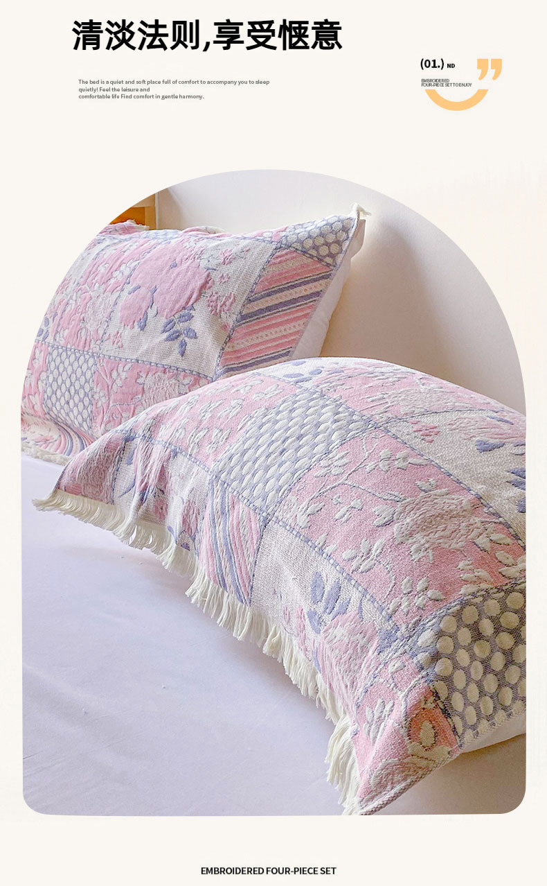 美宜家 2025新款全棉流苏枕巾高档棉软隔脏防头油枕巾 似锦 52*75cm/对