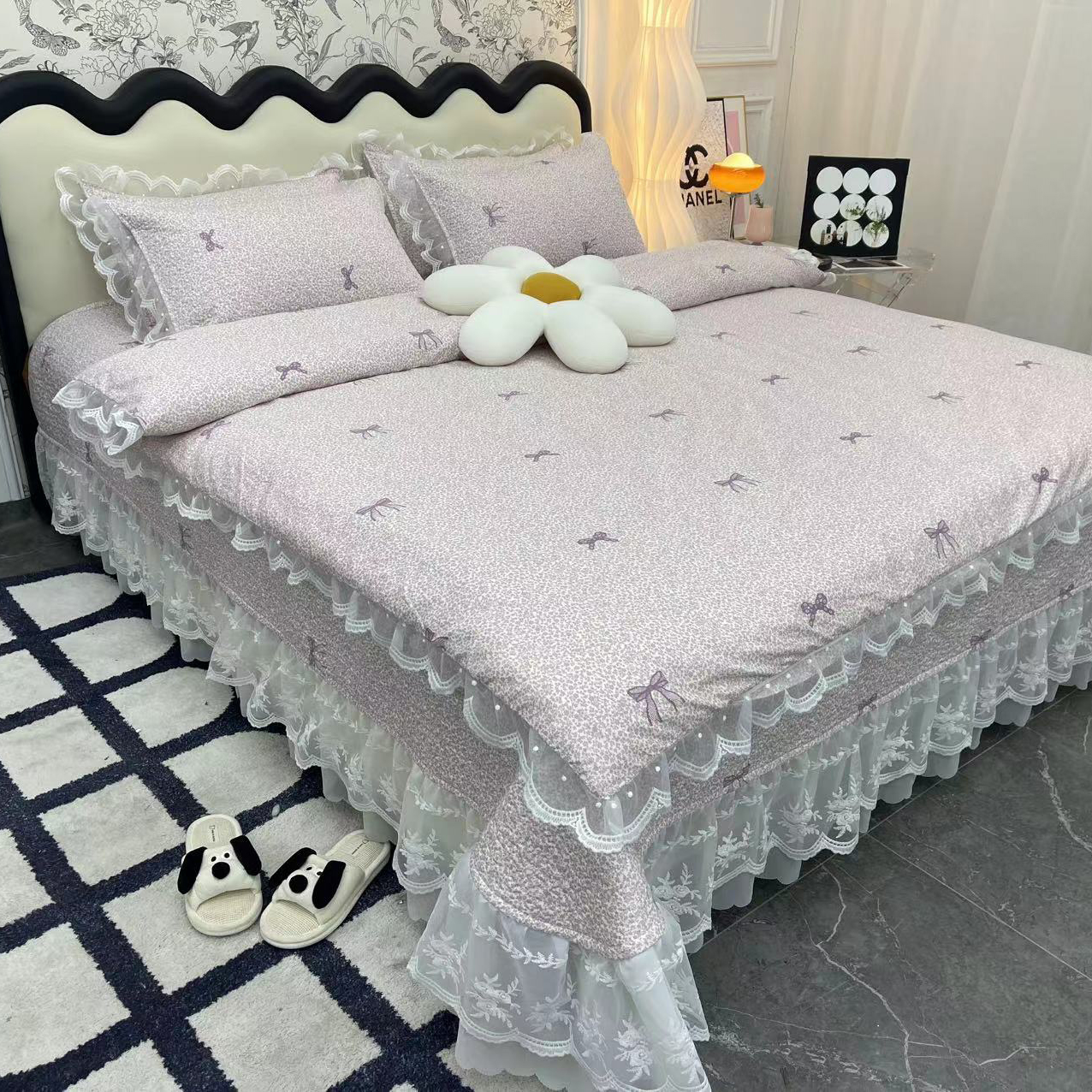 (总)禧瑞谷 2025新款双层花边纯棉床盖雪纺蕾丝款纯棉床盖四件套,白波点蝴蝶结,白底波点,白兰地,彩条熊,草莓熊,粉底草莓,格子郁金香,花仙兔,蓝色猫咪,洛丽塔粉,缪格子紫蝴蝶结,奶油草莓,顽皮象,香香格子,笑脸,新条纹蝴蝶结,紫色花海,莓格甜梦,梦境,奶油小狗,心想柿成