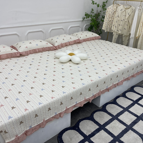 (总)禧瑞谷 2025新款全棉纯棉双层花边绗缝夹棉榻榻米支持定制农村大炕盖,白波点蝴蝶结,诚意布格,花丛兔,梦境,谬格子蝴蝶结,奶油草莓,条纹熊头,香香格子,格调蓝,粉底草莓,草莓熊,白底波点,笑脸,缪格子蝴蝶结 ,梦境 ,洛丽塔粉,彩条熊
