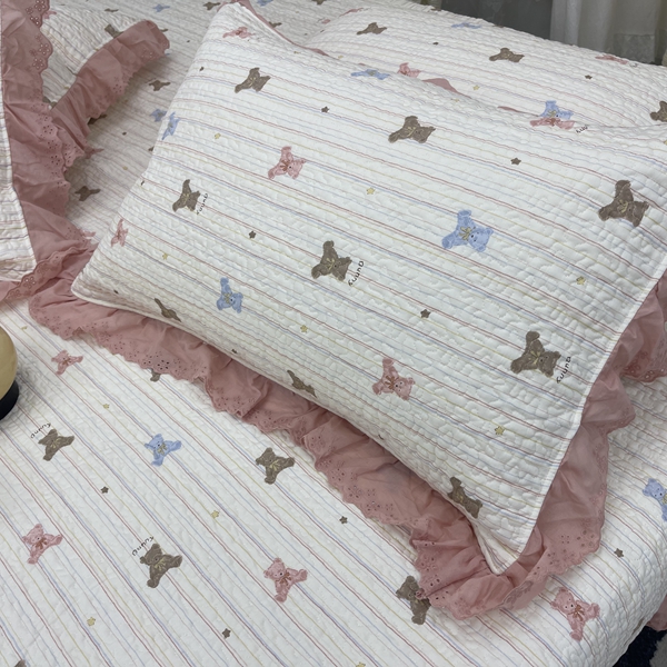 禧瑞谷 2025新款全棉纯棉双层花边绗缝夹棉榻榻米支持定制农村大炕盖 彩条熊