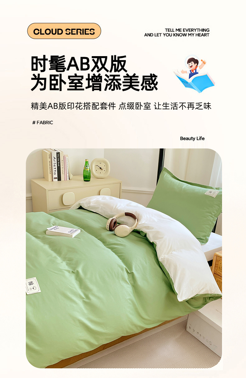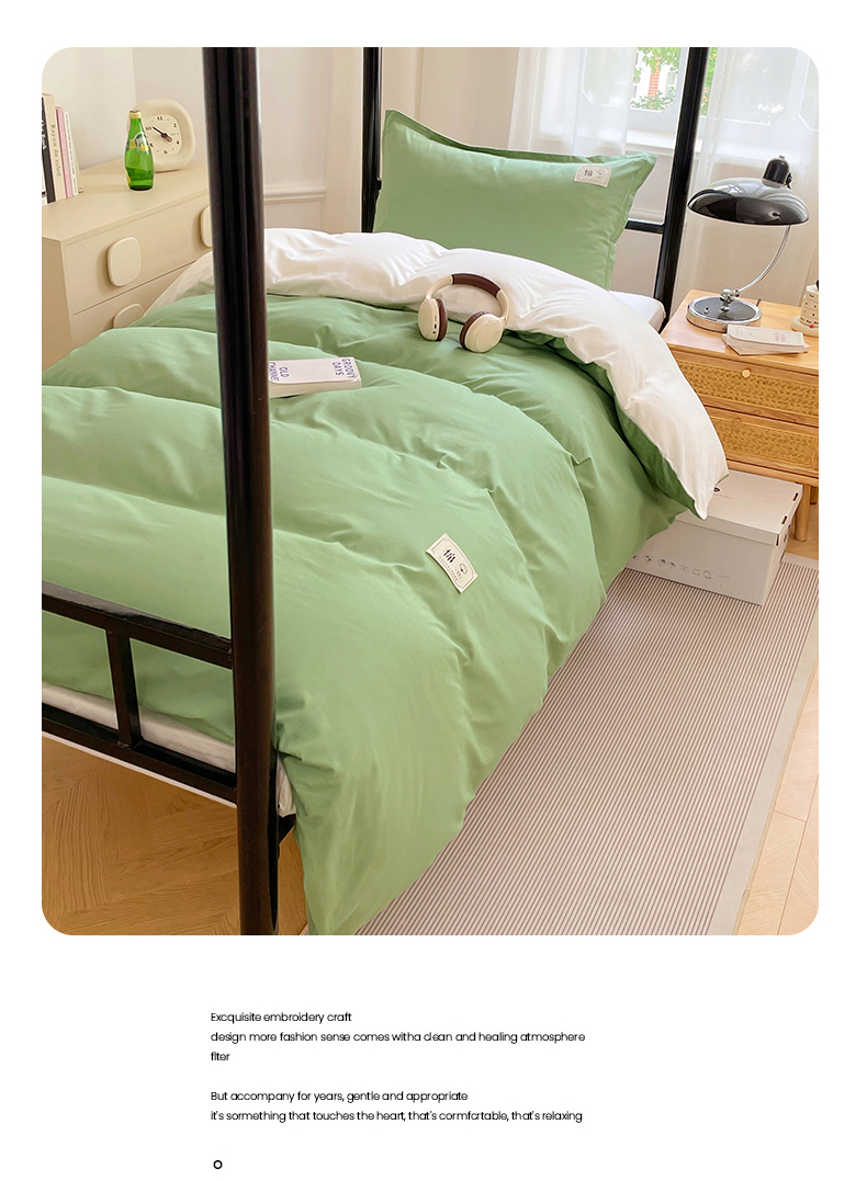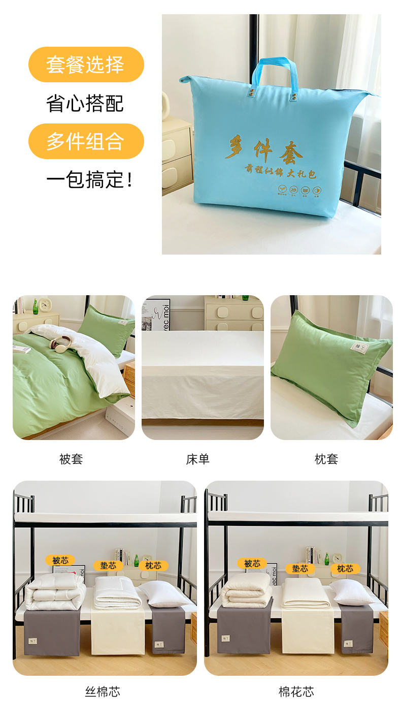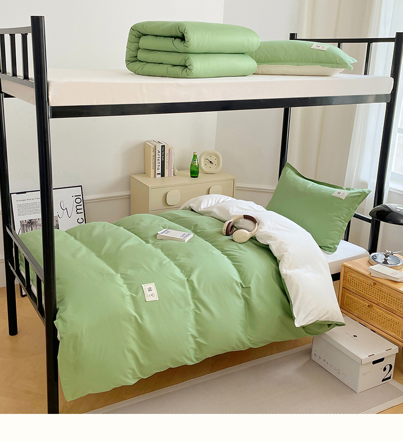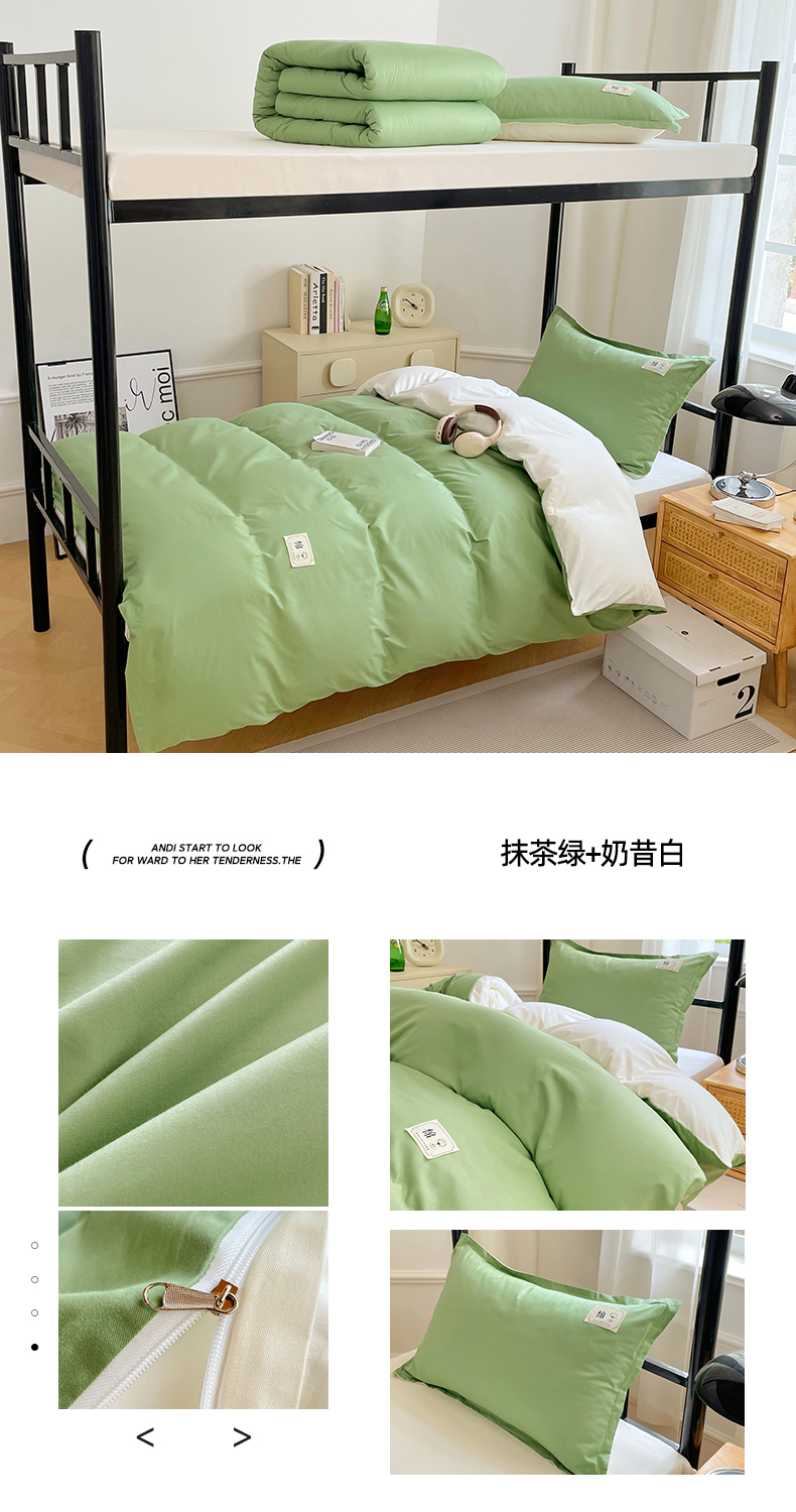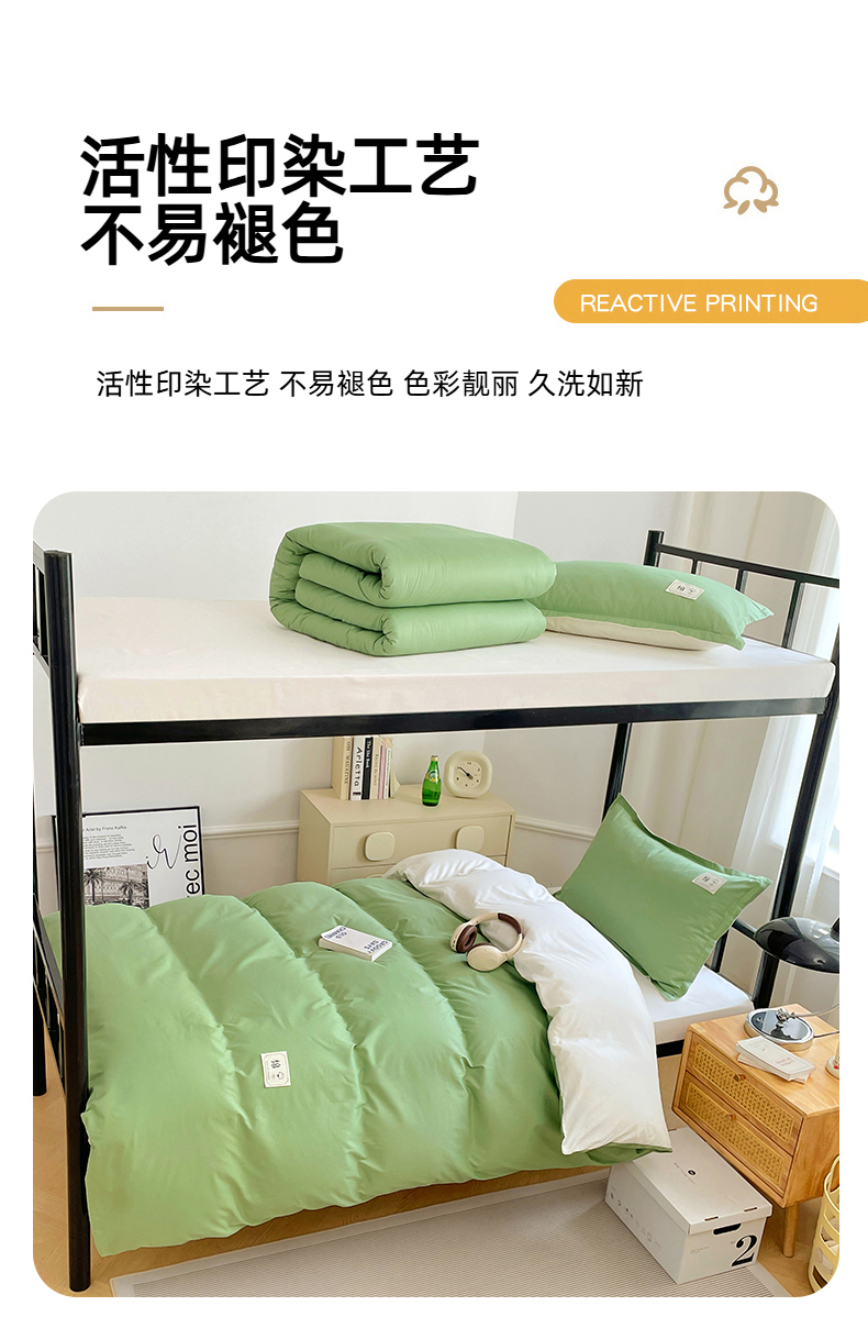 锦润家纺2025新款13372全棉纯色双拼学生宿舍三件套六件套