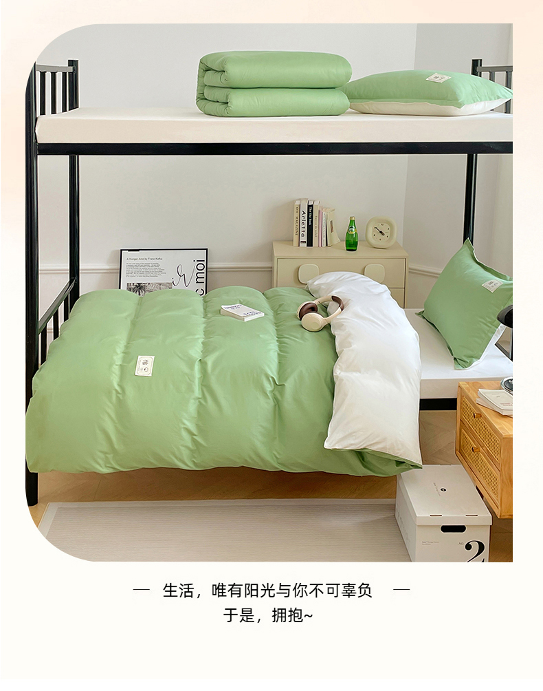 • 91家纺网 家纺一手货源 找家纺 锦润家纺2025新款13372全棉纯色双拼学生宿舍三件套六件套