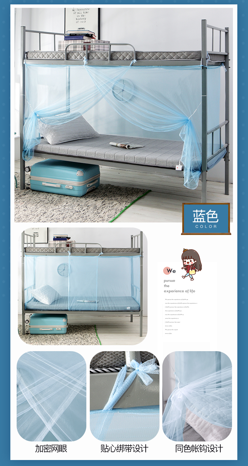 商品名称:博诺蚊帐 2025新款学生宿舍蚊帐 蓝色