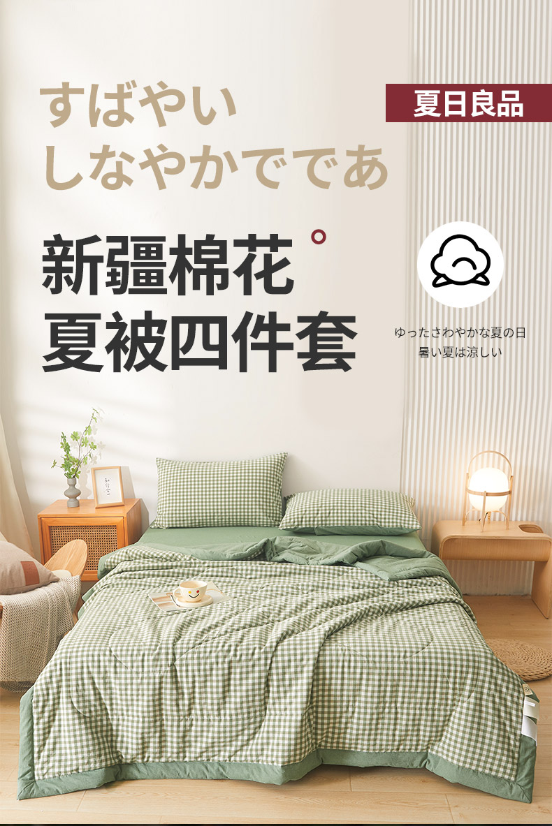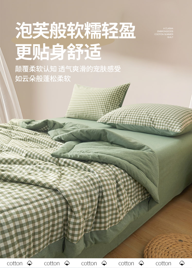 • 91家纺网 家纺一手货源 找家纺  2025新款无印风新疆棉花夏被夏凉被空调可机洗(提供买家秀 爆款花型 不断货) 绿小格
