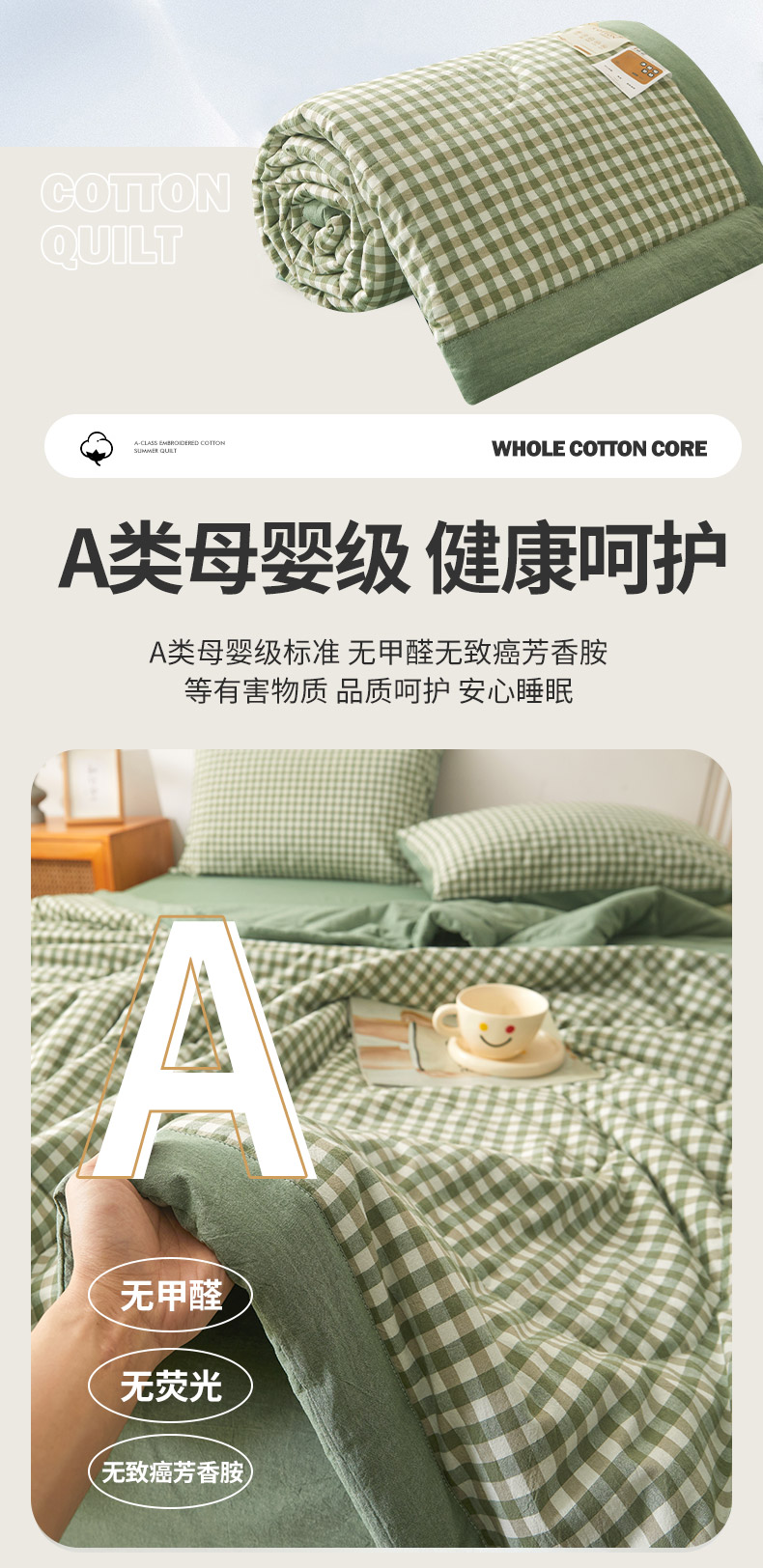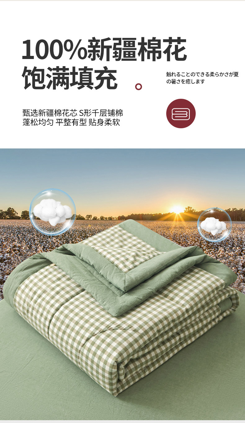 2025新款无印风新疆棉花夏被夏凉被空调可机洗(提供买家秀 爆款花型 不断货) 绿小格