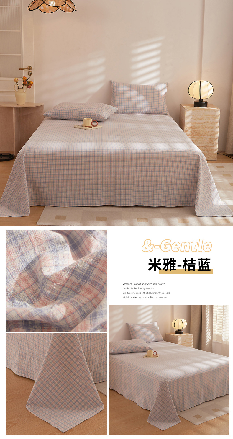 • 91家纺网 家纺一手货源 找家纺 DoDo 兜兜 2026新款全棉纯棉水洗棉系列单床单【可定做尺寸】 米雅-桔蓝