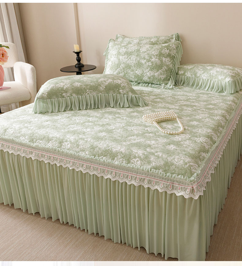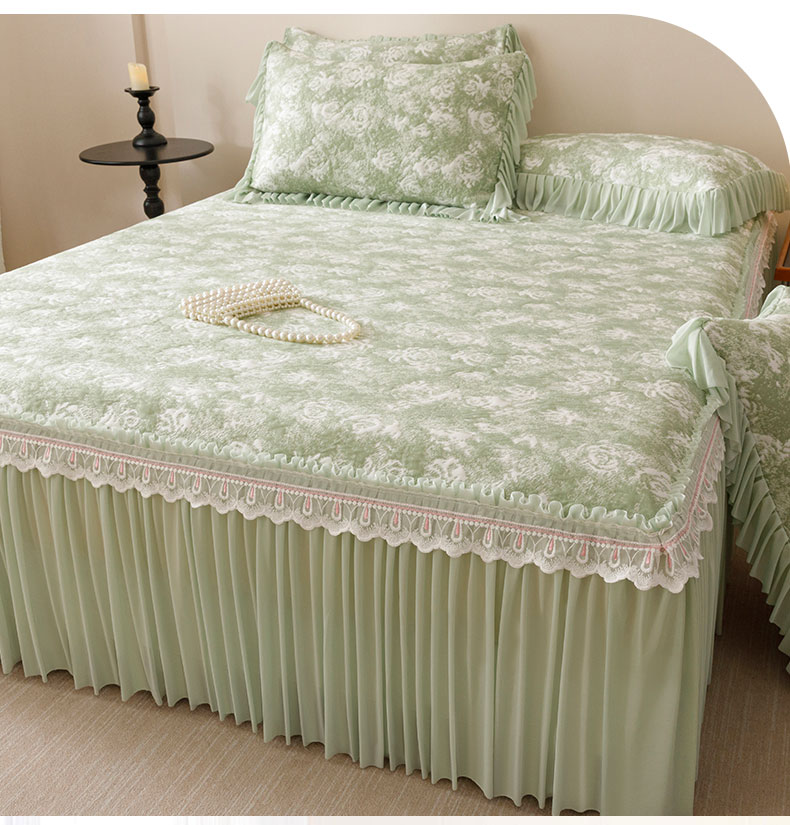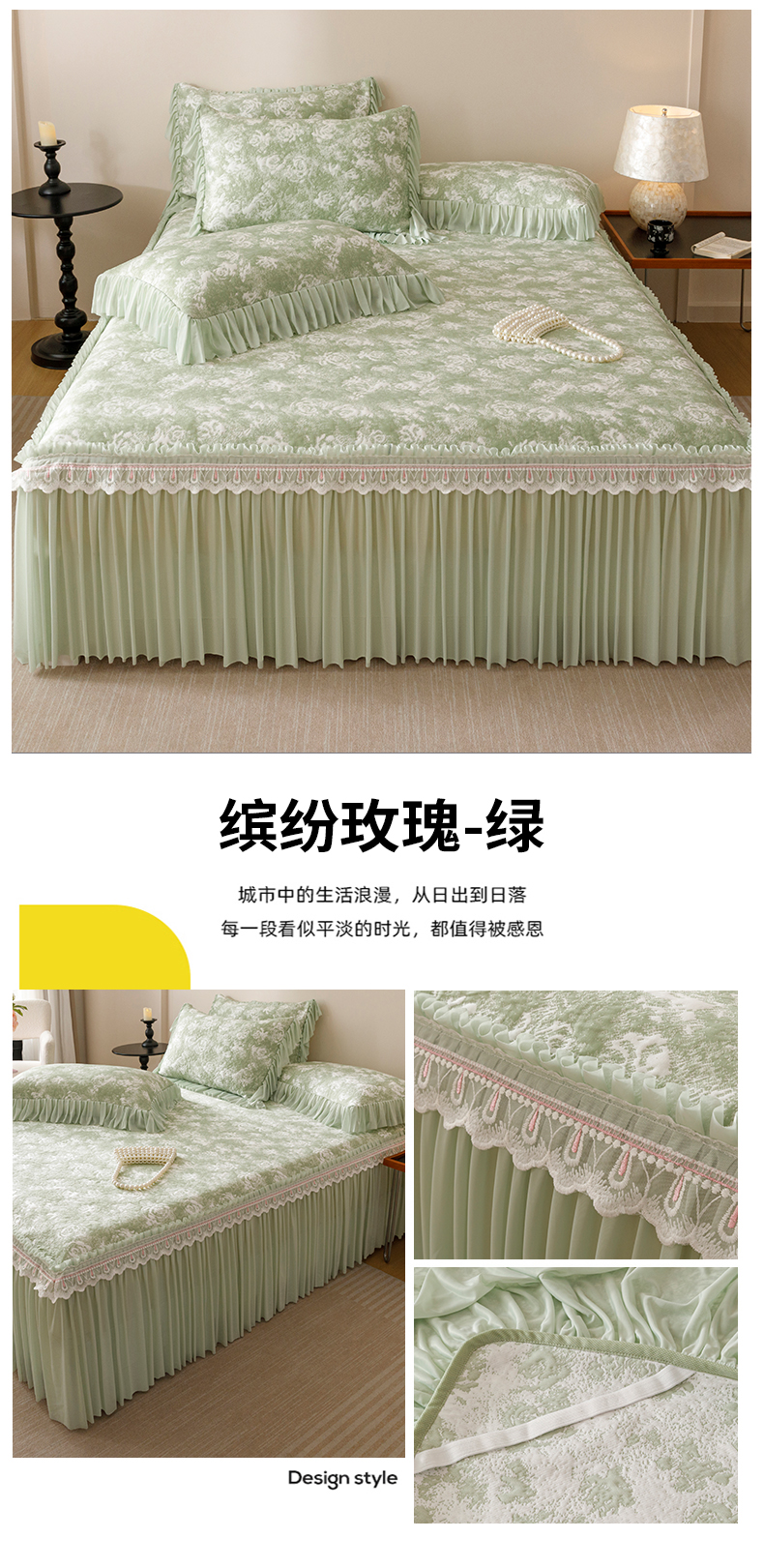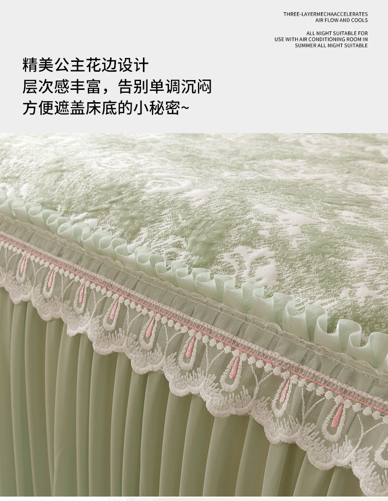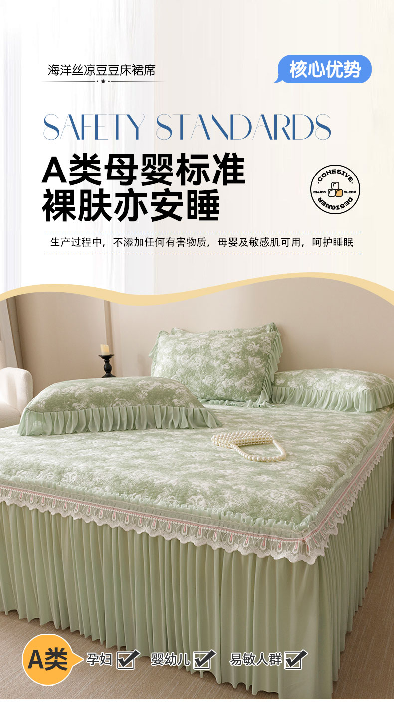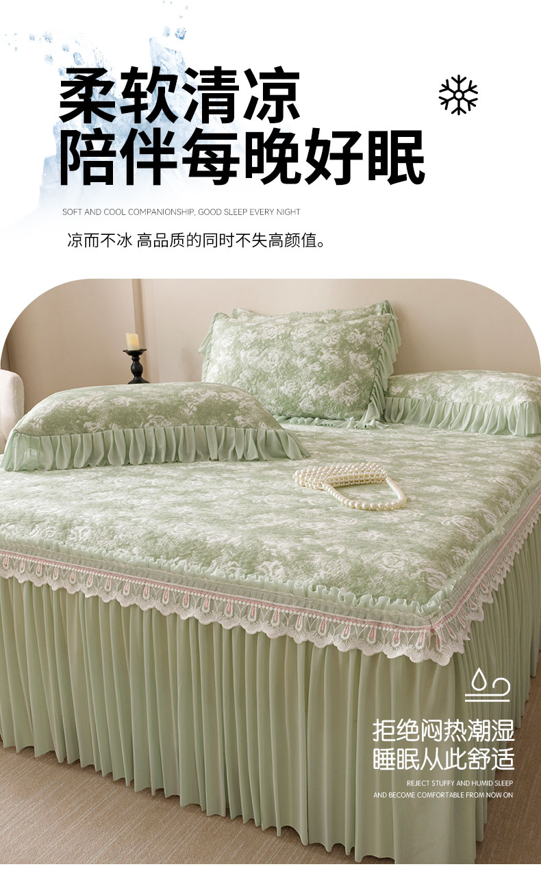 好儿喜家纺 2025新款海洋丝凉感豆豆床裙凉席-缤纷玫瑰 缤纷玫瑰-绿