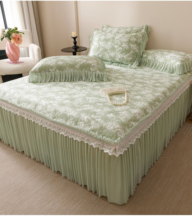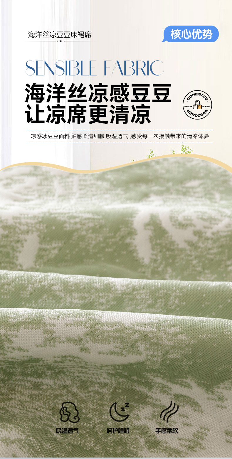 • 91家纺网 家纺一手货源 找家纺 好儿喜家纺 2025新款海洋丝凉感豆豆床裙凉席-缤纷玫瑰 缤纷玫瑰-绿