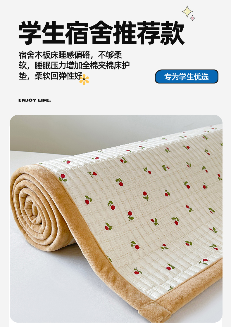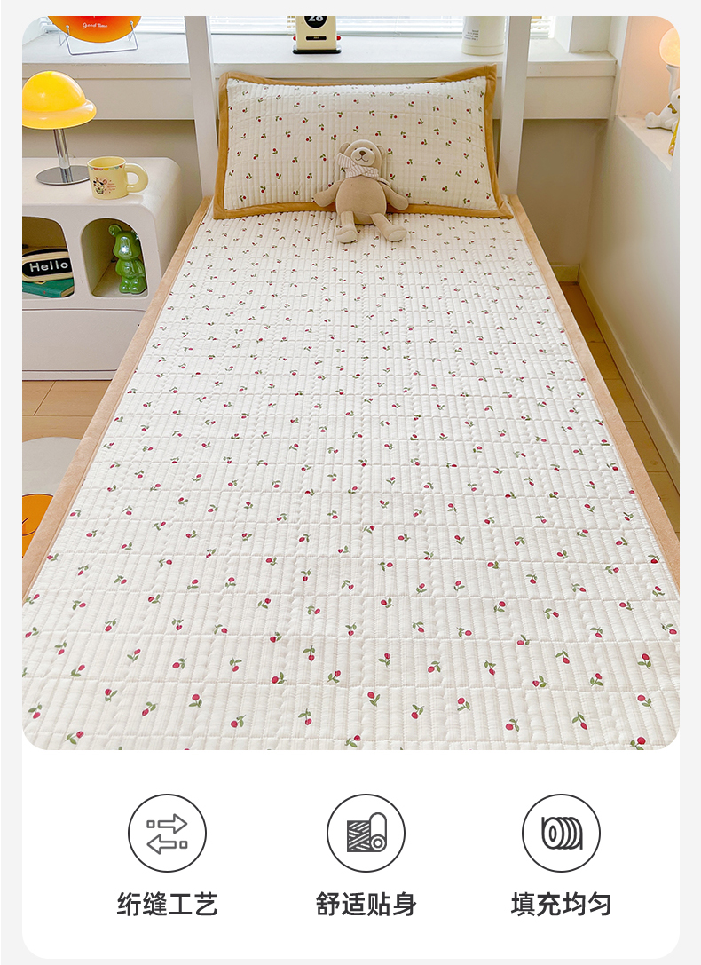 当前位置: 91家纺网 > 商品网购 > 床垫/床褥 > 普通床垫 > 恒爱家纺 2025新款学生季全棉宝宝绒双面款床护垫 大樱桃