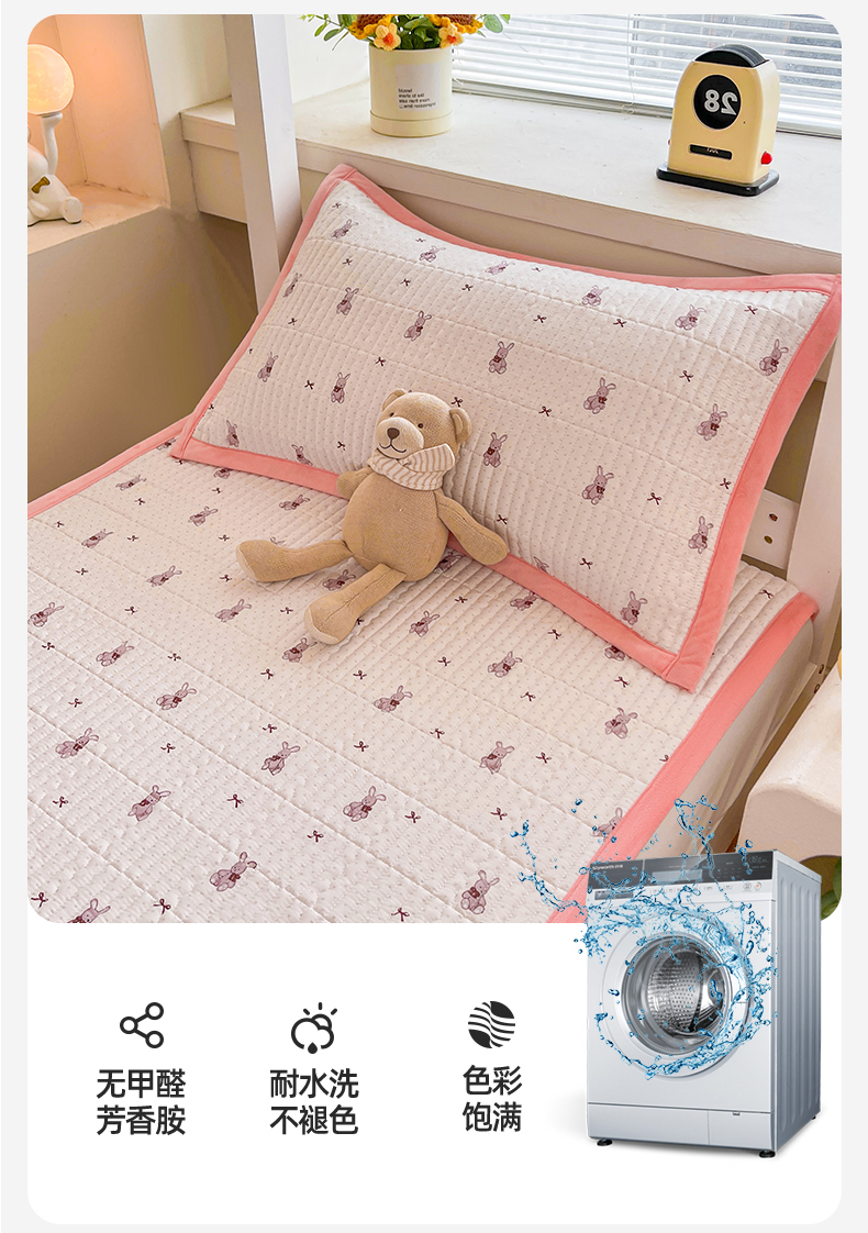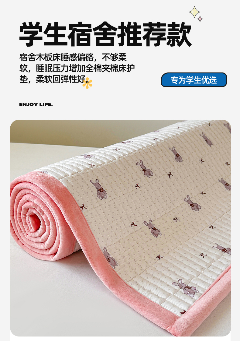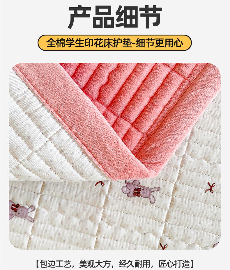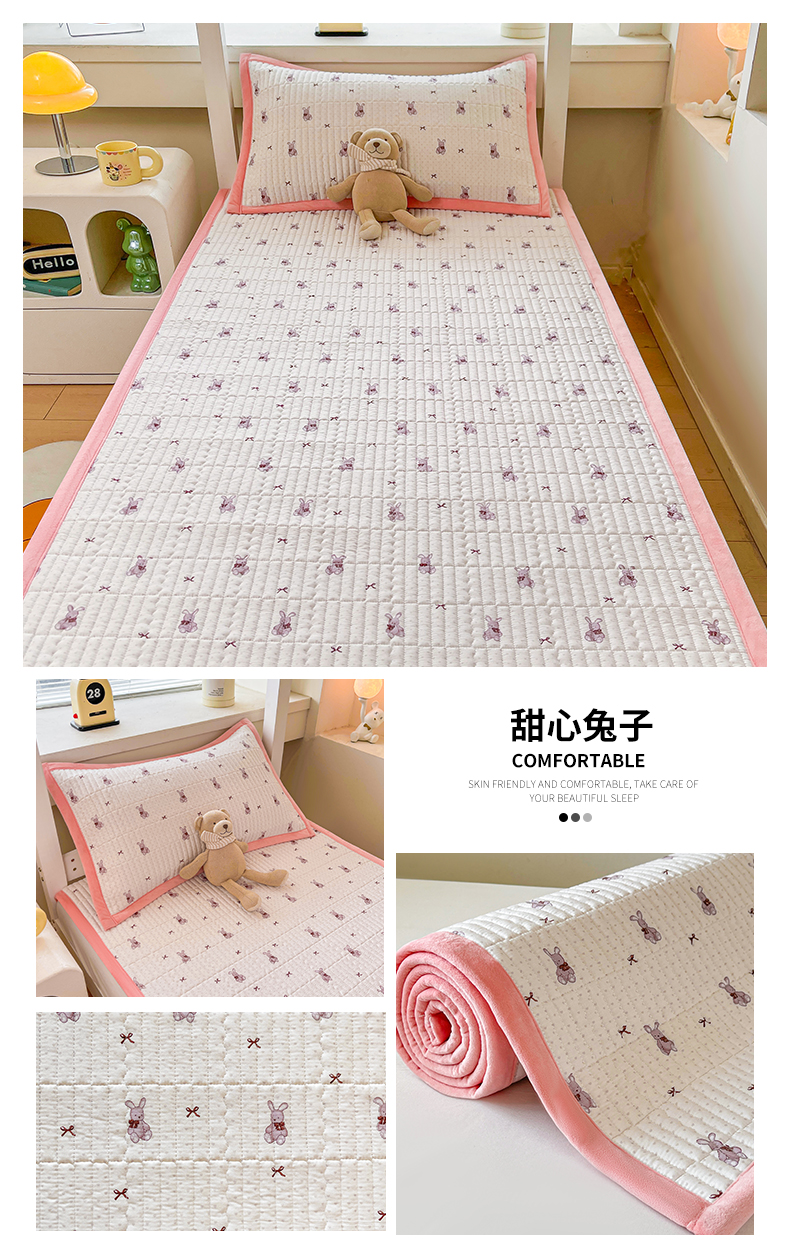 当前位置: 91家纺网 > 商品网购 > 床垫/床褥 > 普通床垫 > 恒爱家纺 2025新款学生季全棉宝宝绒双面款床护垫 甜心兔子