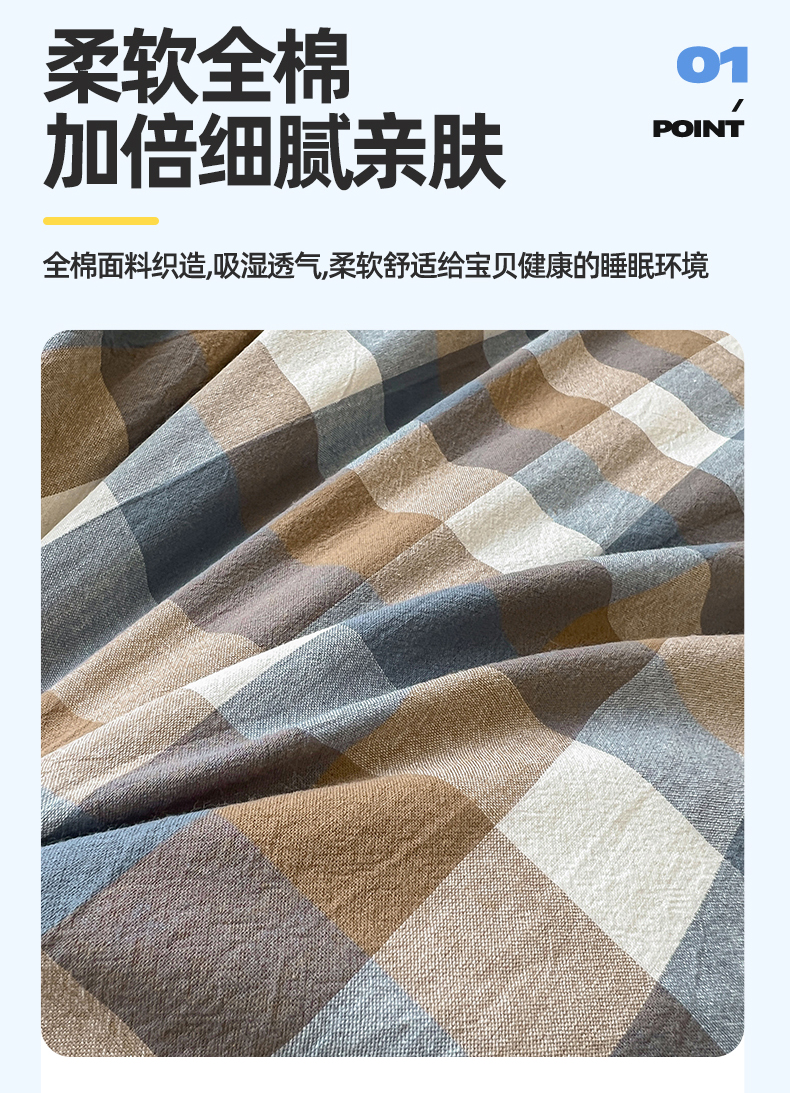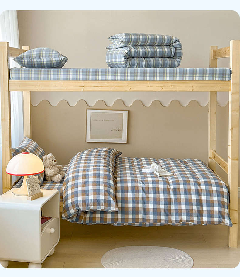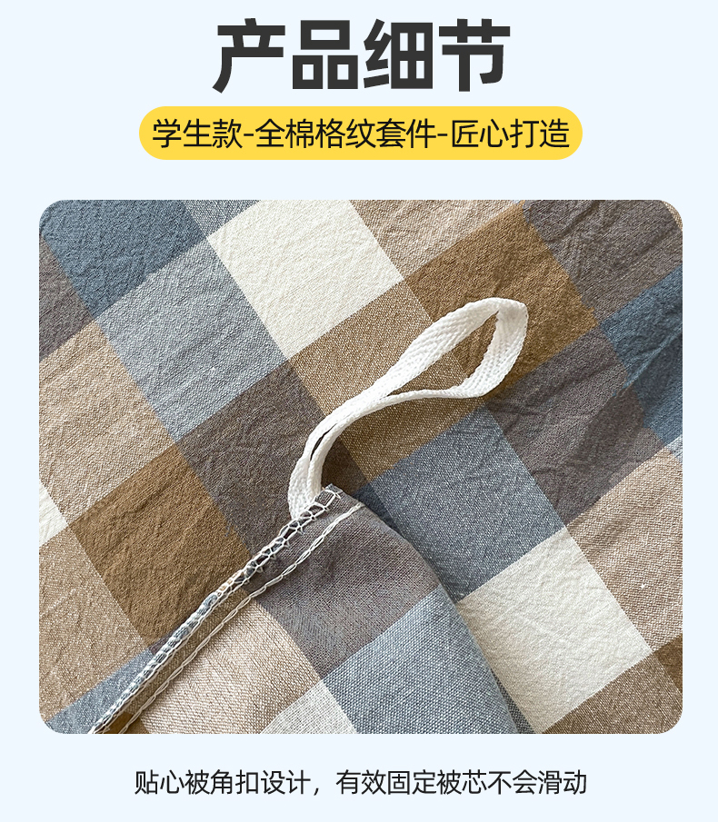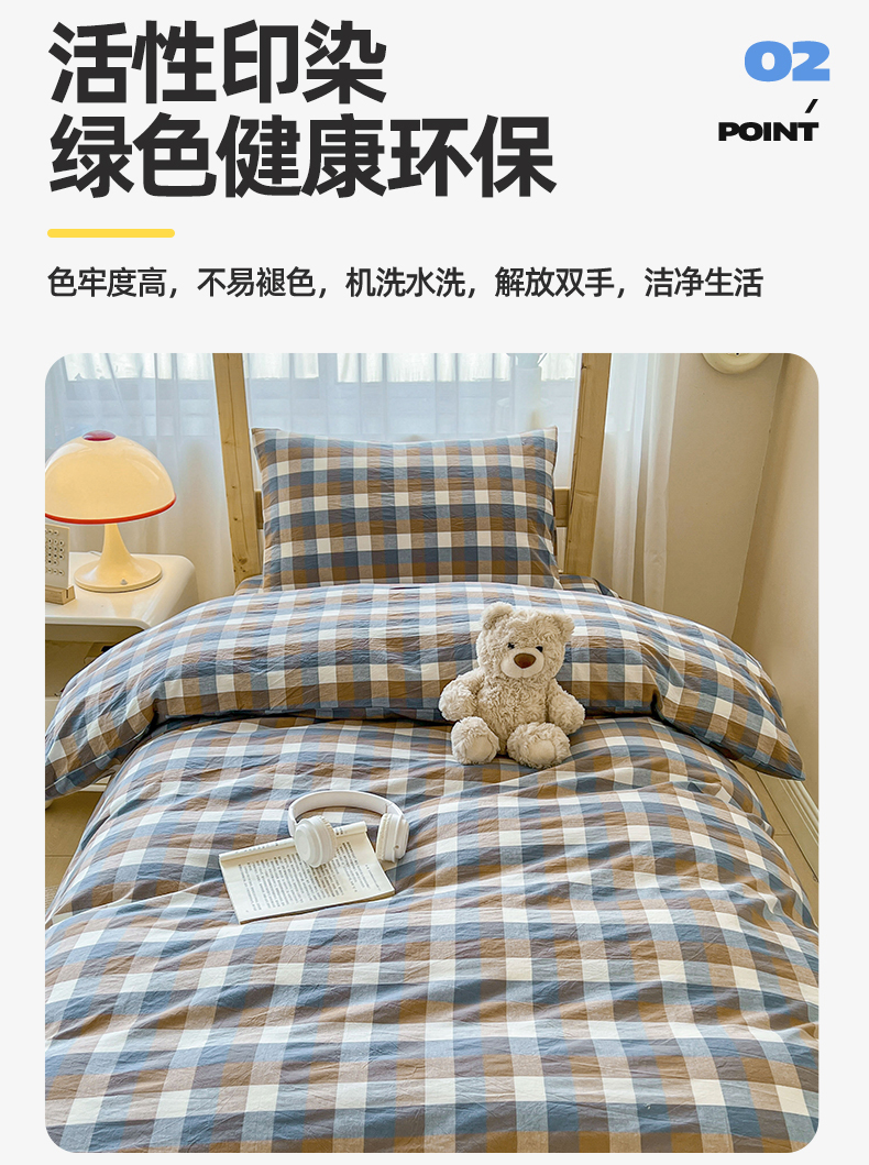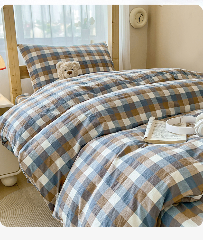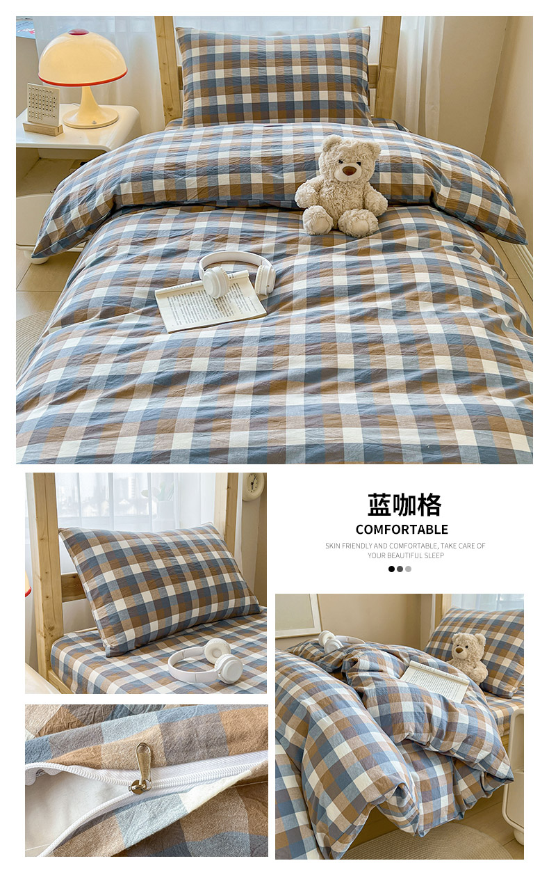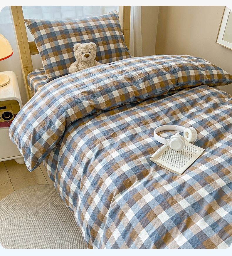 当前位置: 91家纺网 > 商品网购 > 床品套件 > 三件套 > 恒爱家纺 2025新款学生季全棉印花格子三件套 蓝咖格