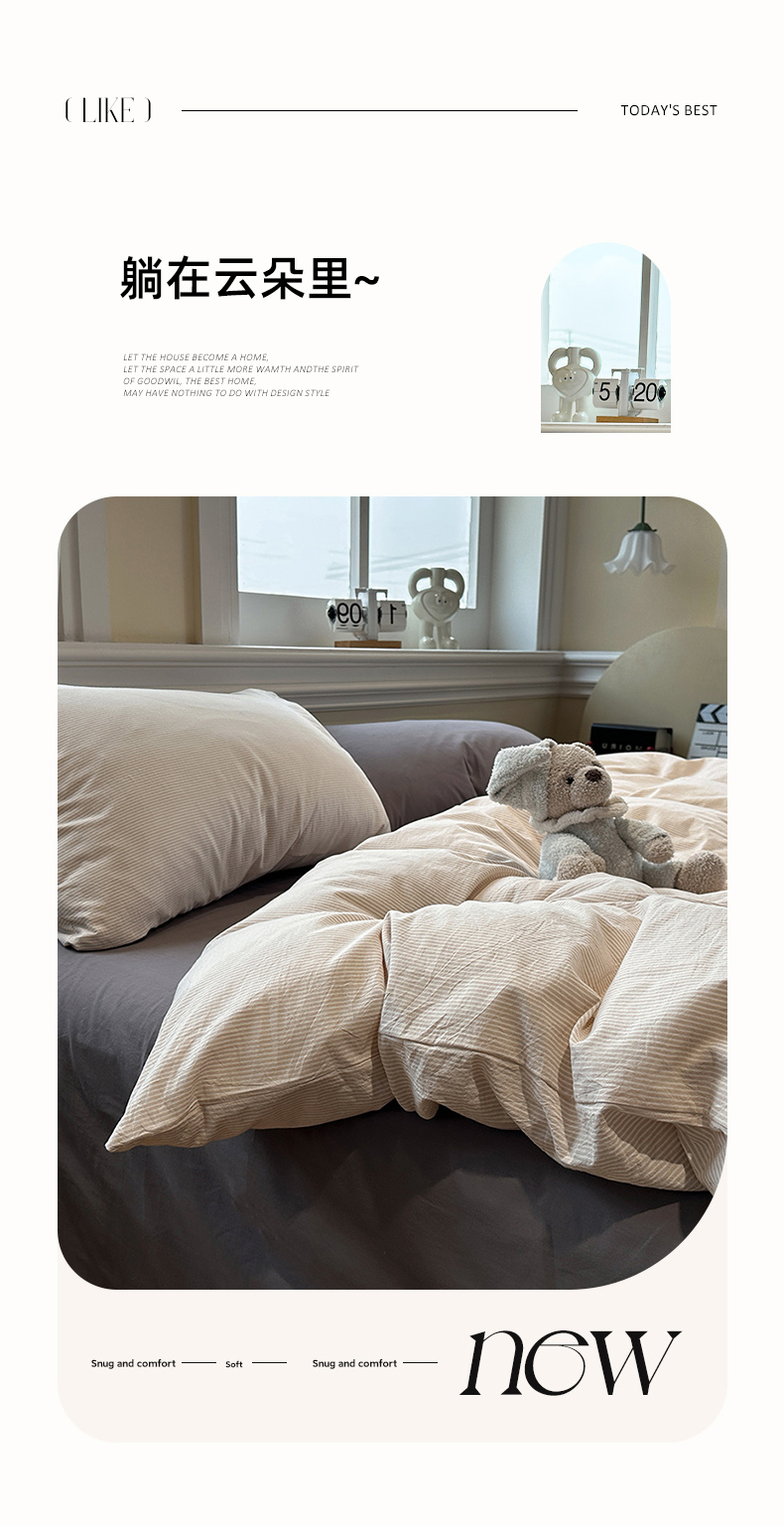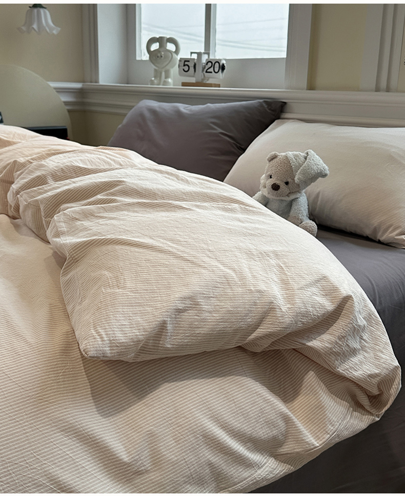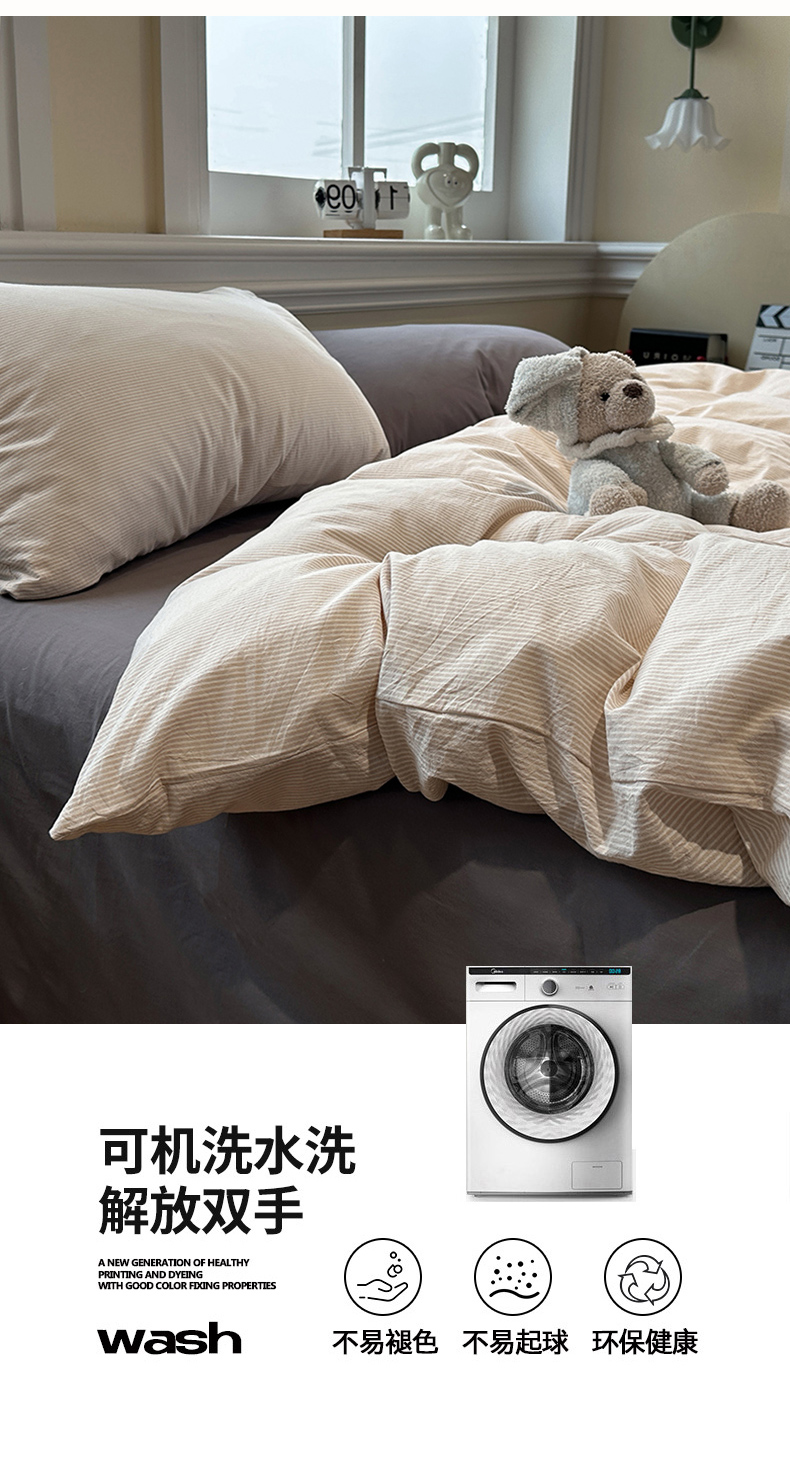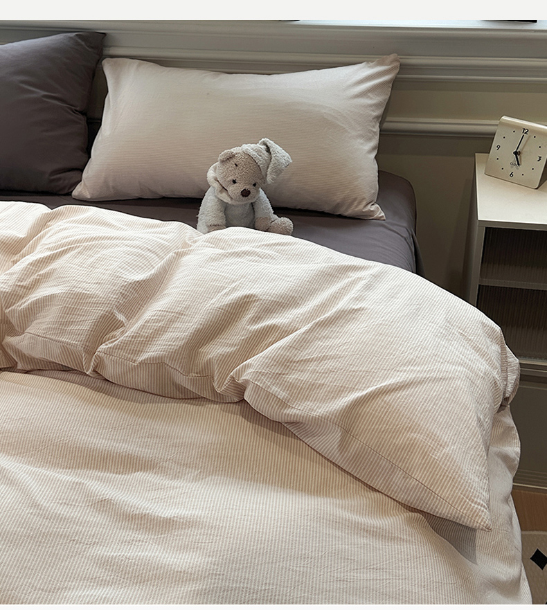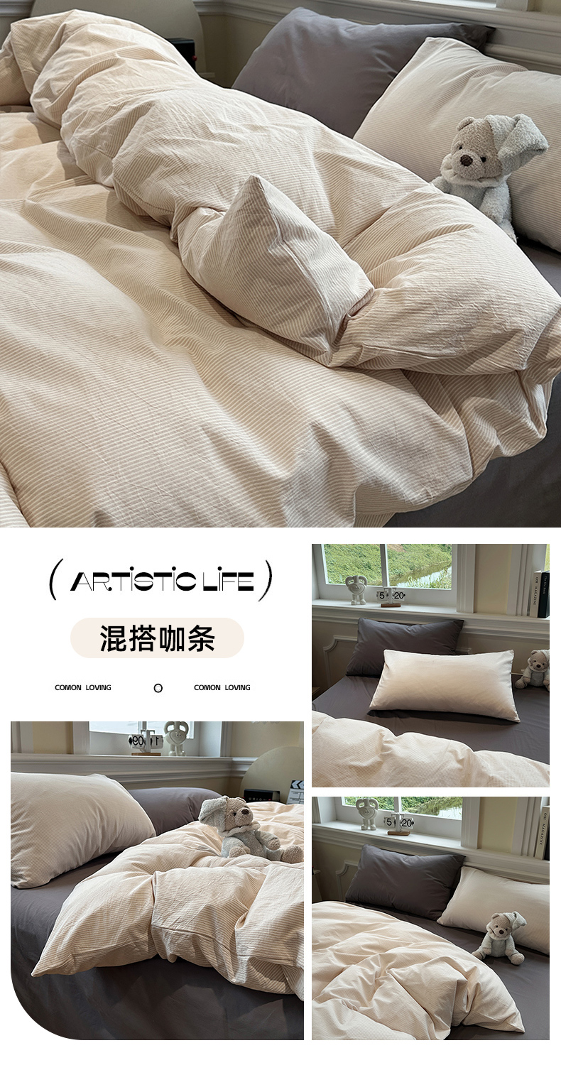 当前位置: 91家纺网 > 商品网购 > 床品套件 > 四件套 > 水洗棉四件套 > 欣晴家纺 2025新款软糯水洗棉条格无印宜家风混搭三件套四件套(风格2) 混搭咖条