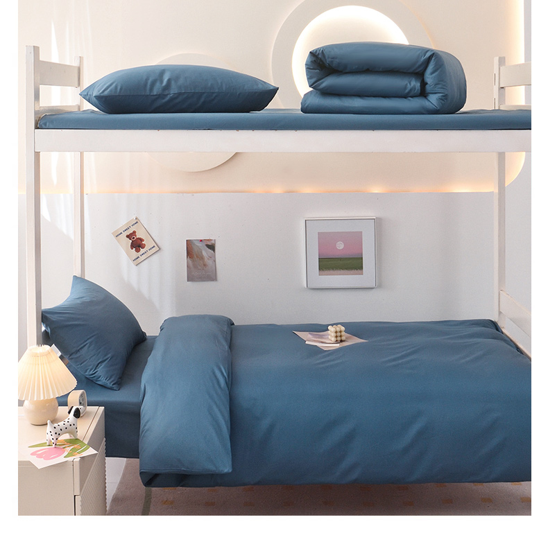 启优家纺 2025新款13372全棉纯棉学生宿舍上下铺三件套 清水蓝