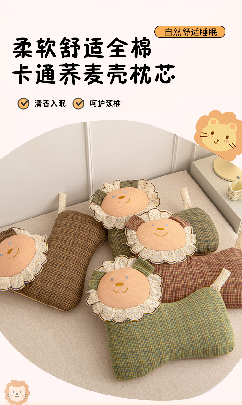 当前位置: 91家纺网 > 商品网购 > 枕头/枕芯/保健枕/颈椎枕 > 普通枕芯 > 大熊枕芯 2025新款全棉纯棉萌趣狮子荞麦枕荞麦壳护颈枕枕头枕套 组合图仅供参考 45x50cm/对