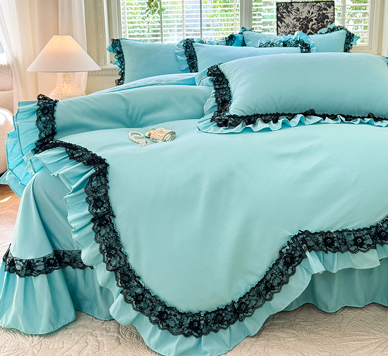 芭比蔓家纺 2025新款亲肤磨毛法式浪漫四件套-依恋 依恋-蓝色
