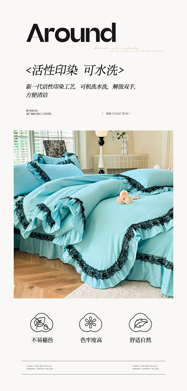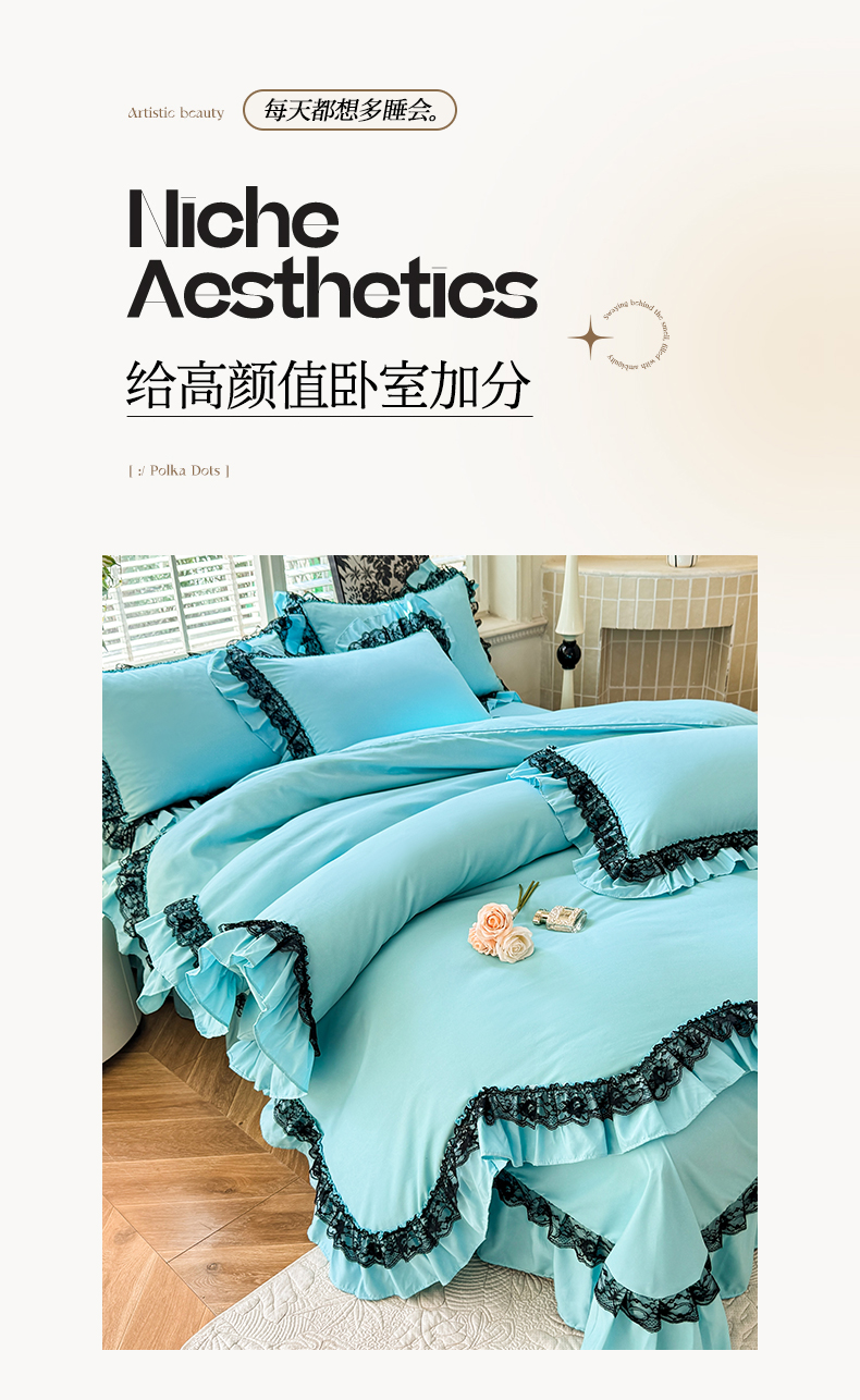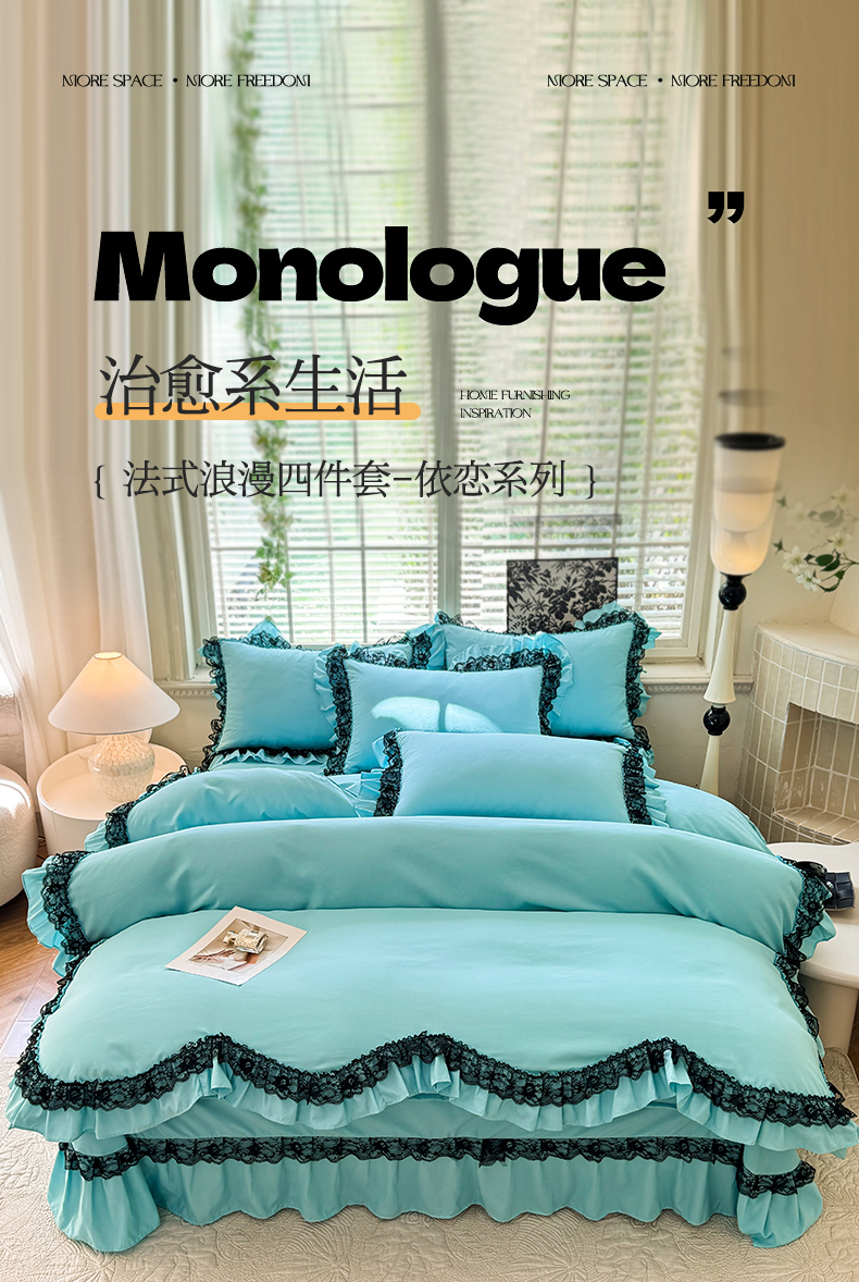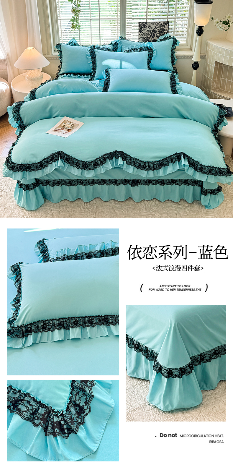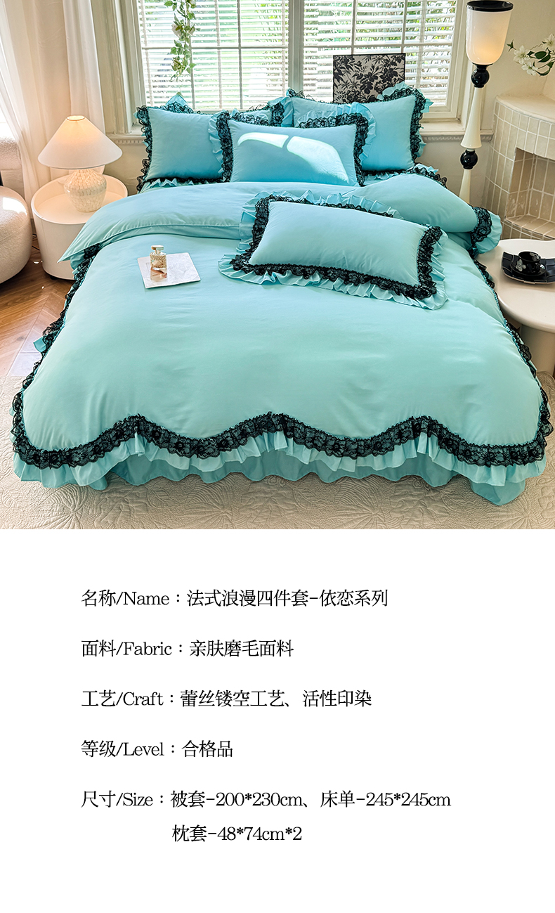 商品名称:芭比蔓家纺 2025新款亲肤磨毛法式浪漫四件套-依恋 依恋-蓝色