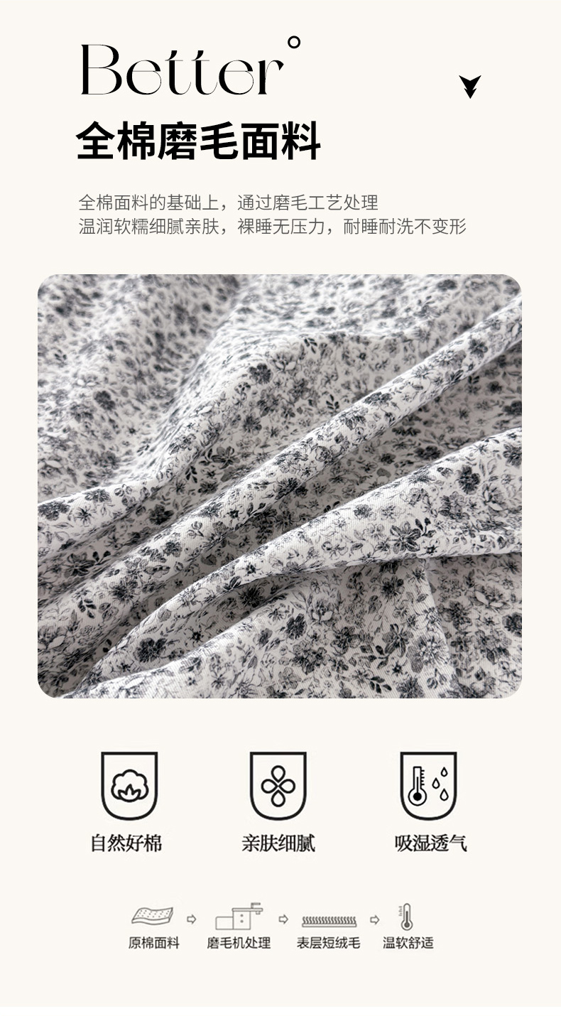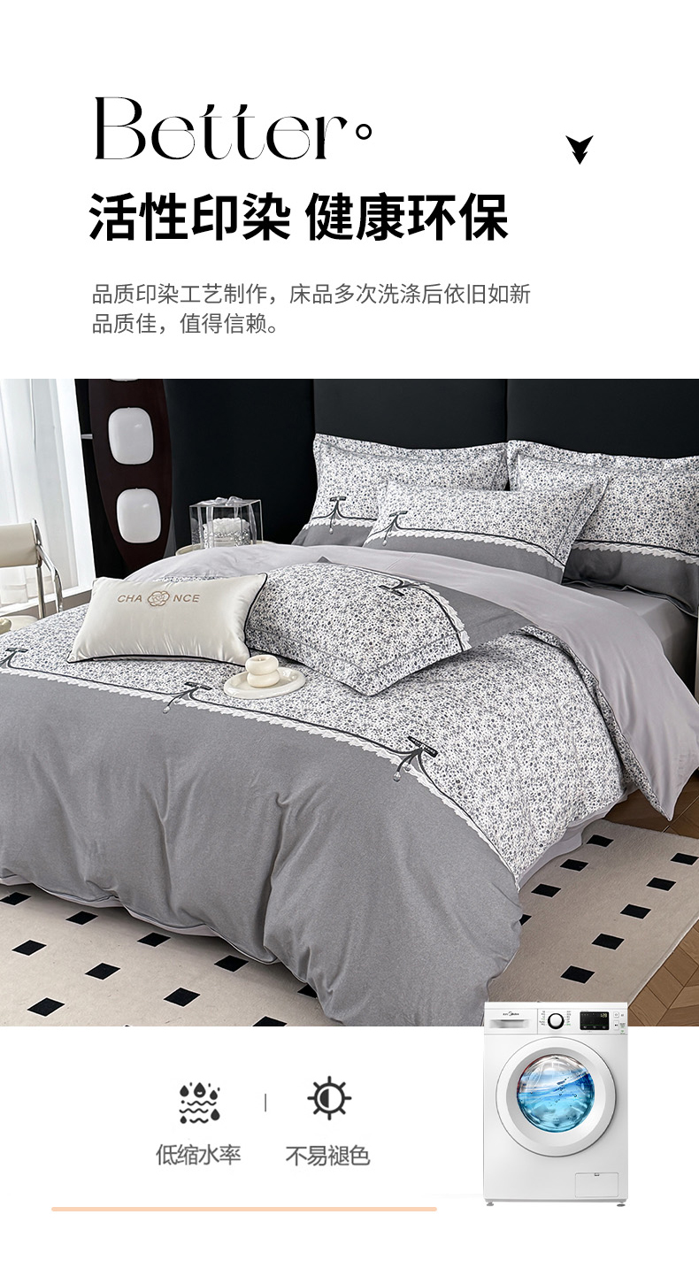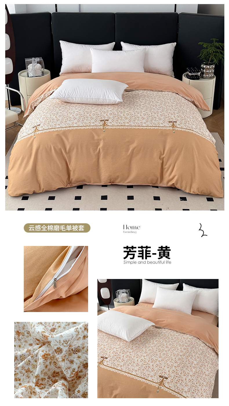 • 91家纺网 家纺一手货源 找家纺 艾迪尚家纺 2025新款云感超柔全棉磨毛印花单品被套系列 芳菲-灰