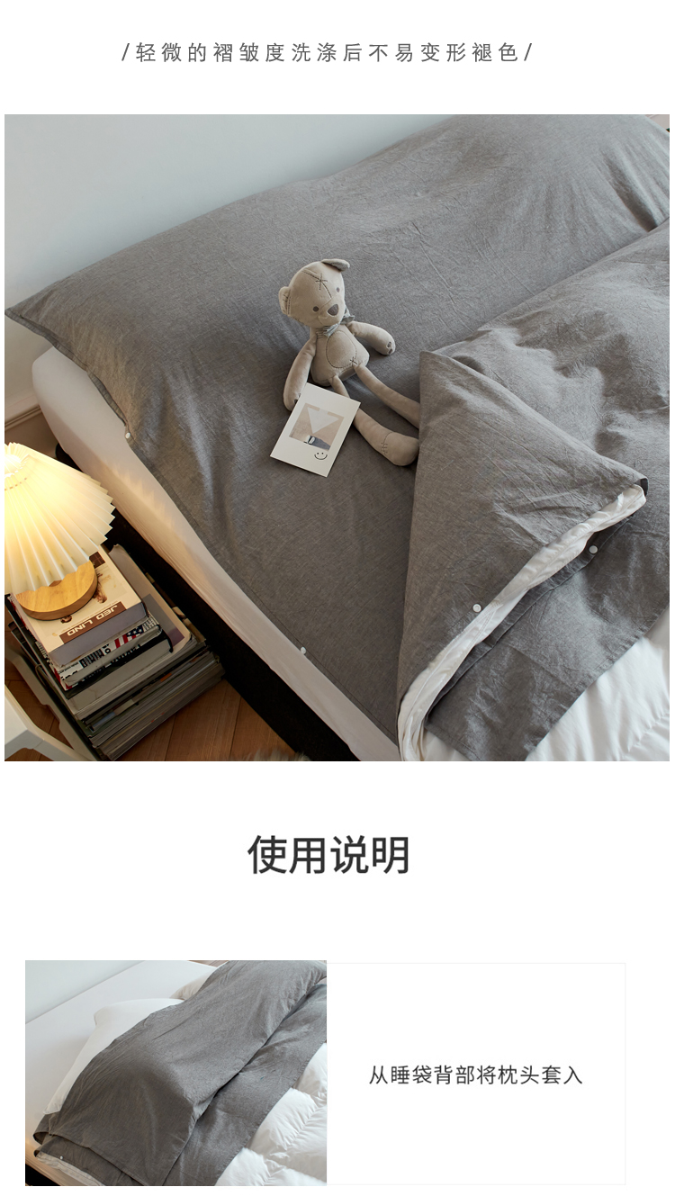 猪先生2025新款全棉水洗棉旅行隔脏睡袋 浅灰