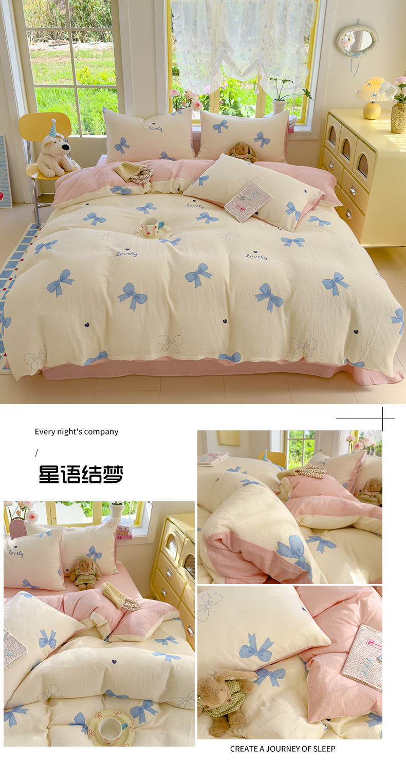 当前位置: 91家纺网 > 商品网购 > 床品套件 > 四件套 > 双层纱四件套 > 颜选2025新款105克加厚双层纱木棉四件套(含买家秀) 星语结梦