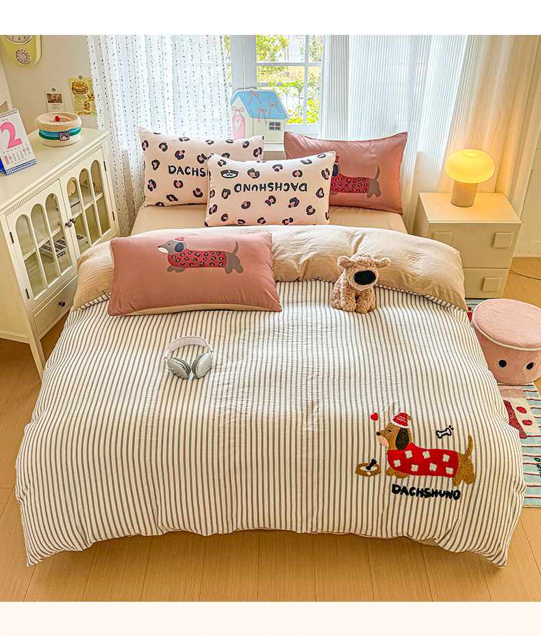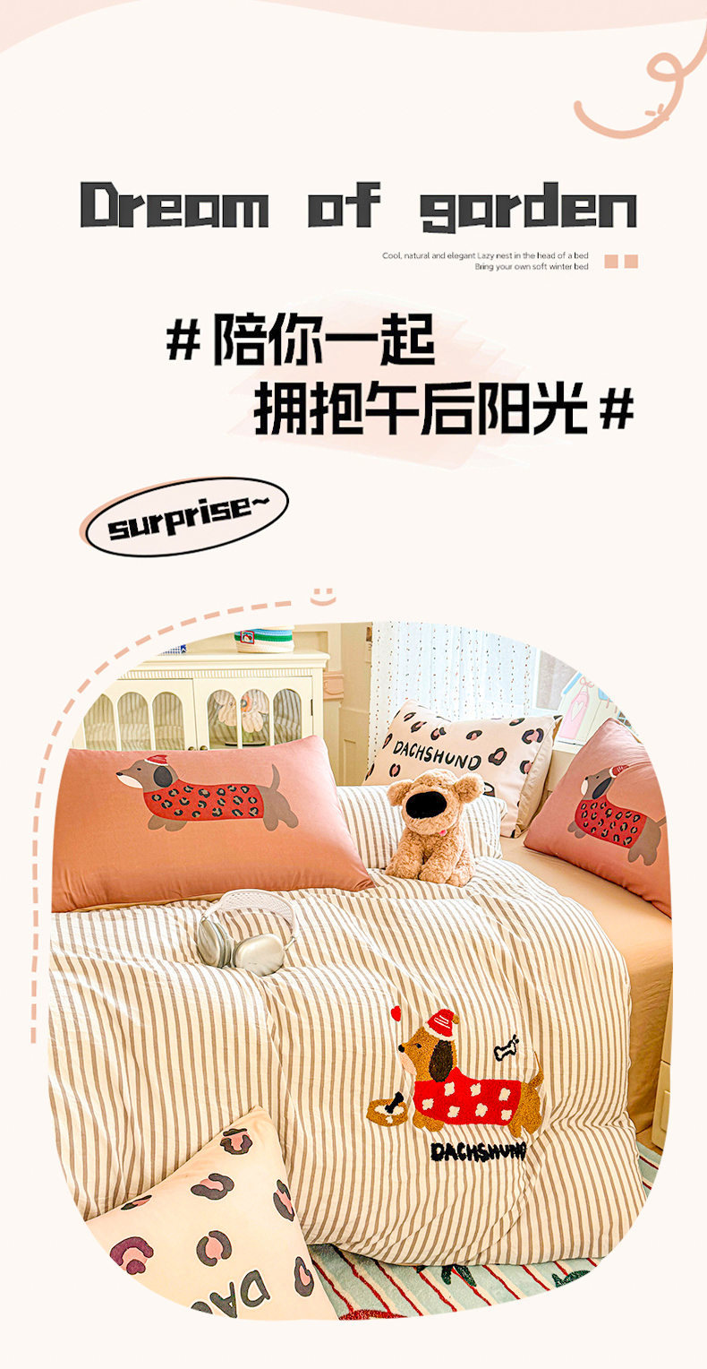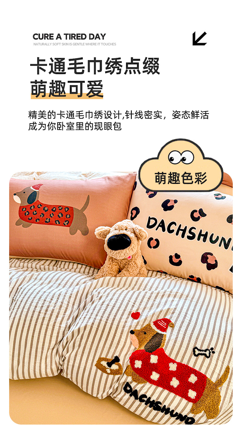 当前位置: 91家纺网 > 商品网购 > 床品套件 > 四件套 > 毛巾绣四件套 > 森璐家纺2025新款水洗云朵棉毛巾绣四件套 腊肠狗-毛巾绣