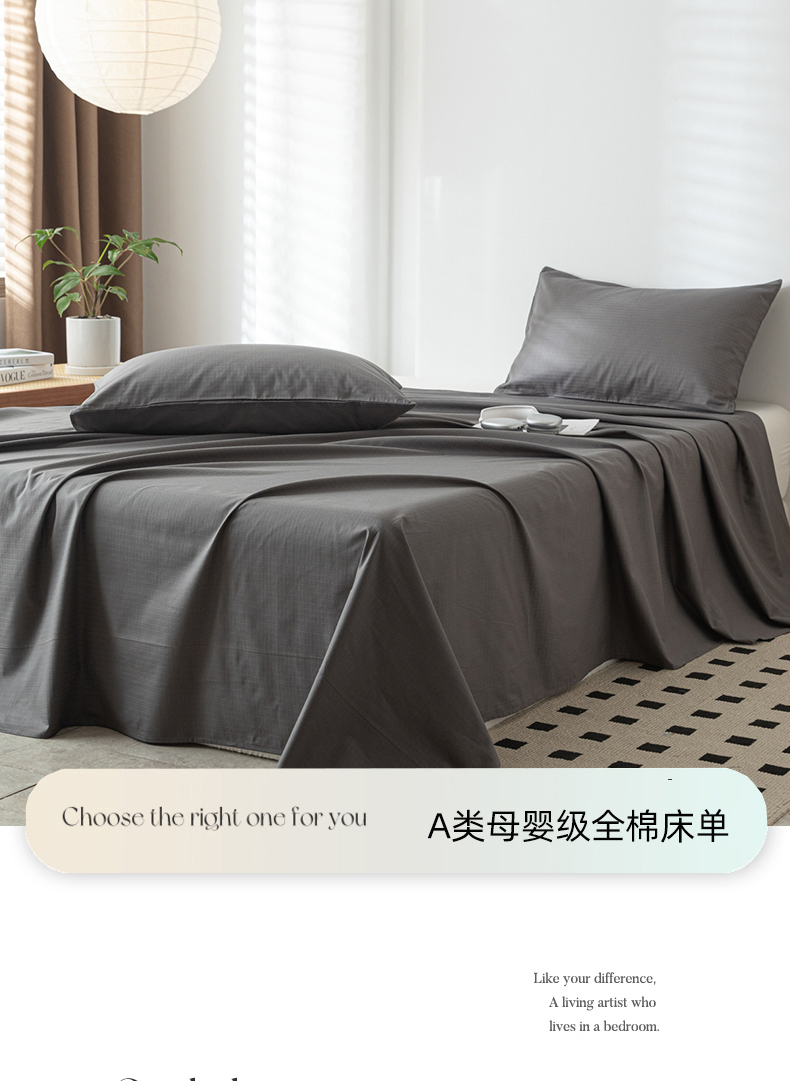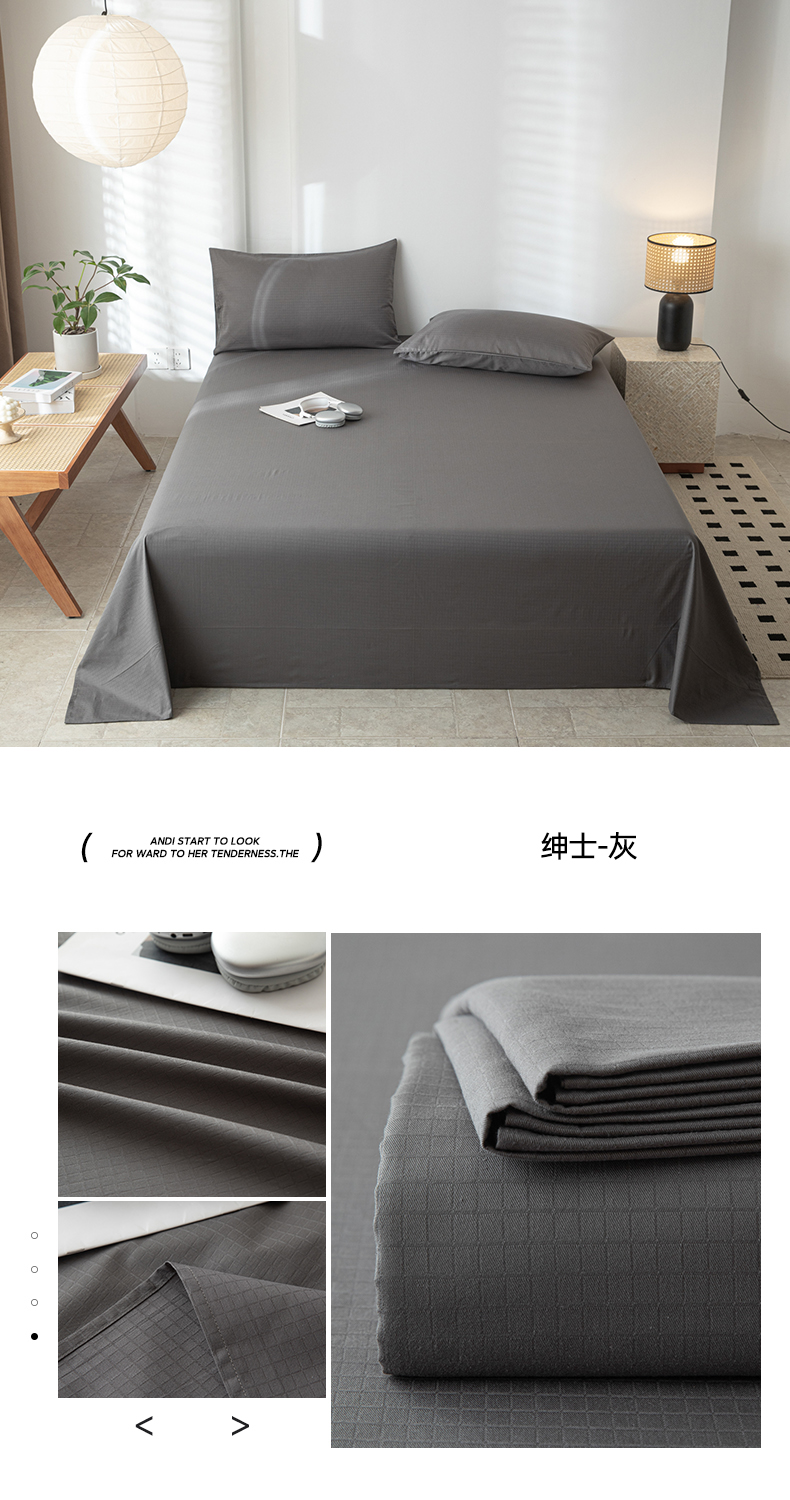 简宜家居(朝初家纺) 2025新款60支贡缎提花A版纯棉床单 绅士-灰