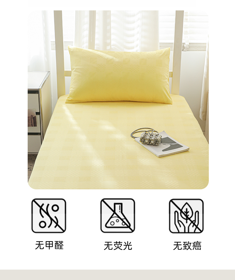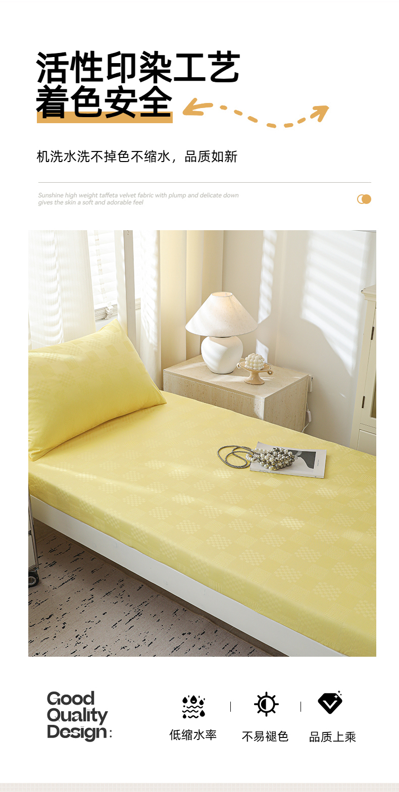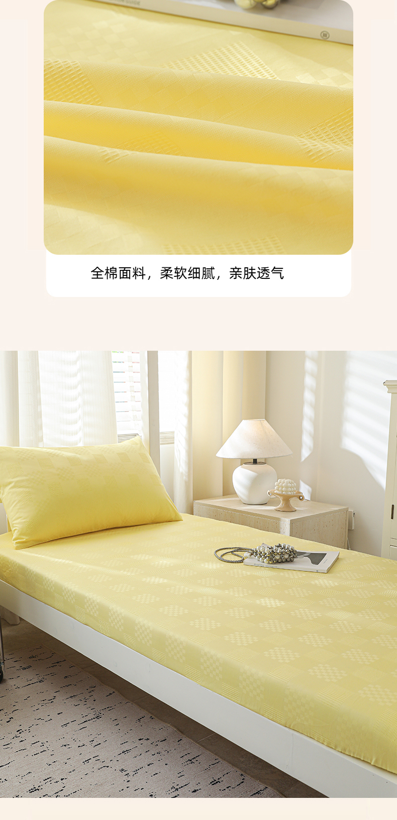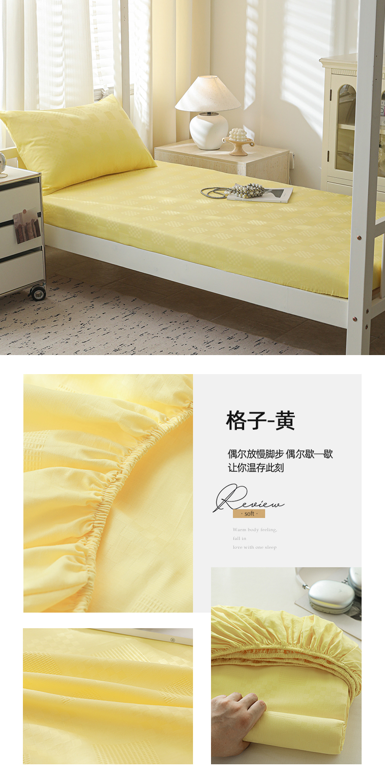 • 91家纺网 家纺一手货源 找家纺 简宜家居(朝初家纺) 2025新款60支贡缎提花A版纯棉床笠 格子-黄