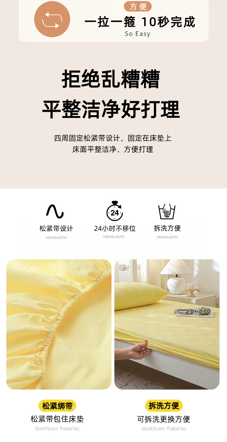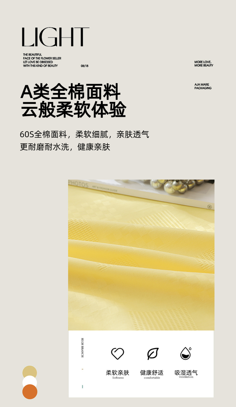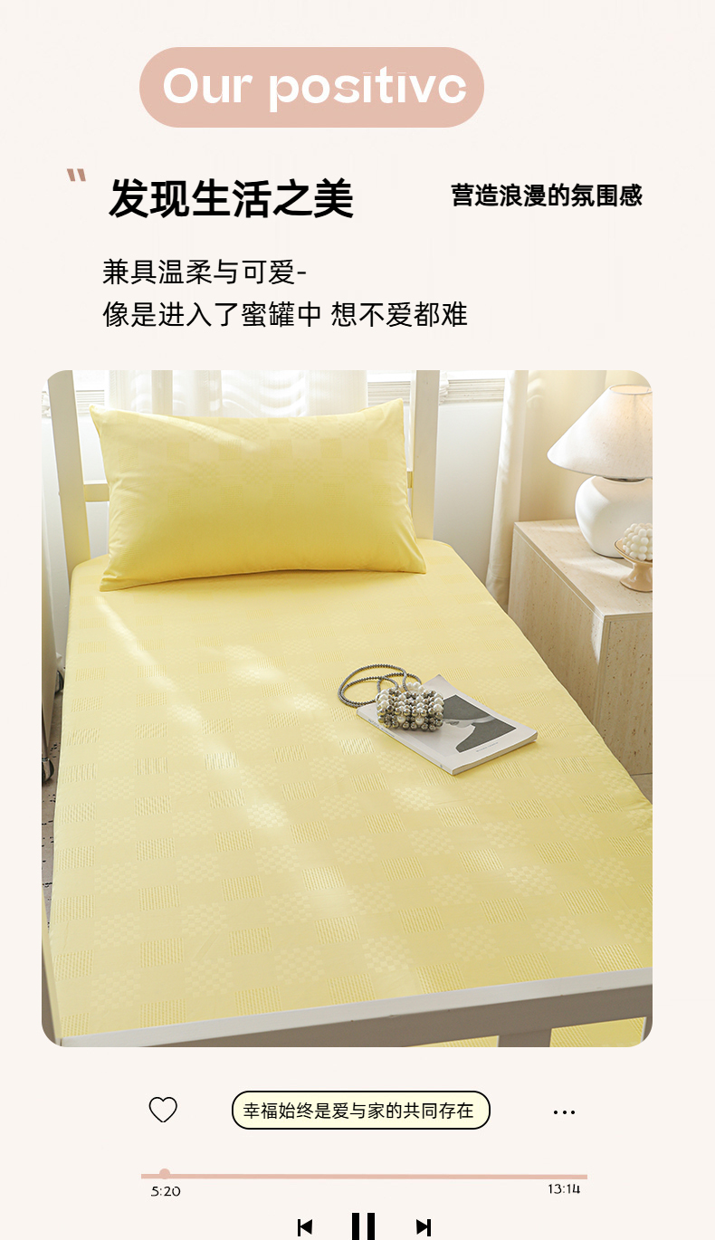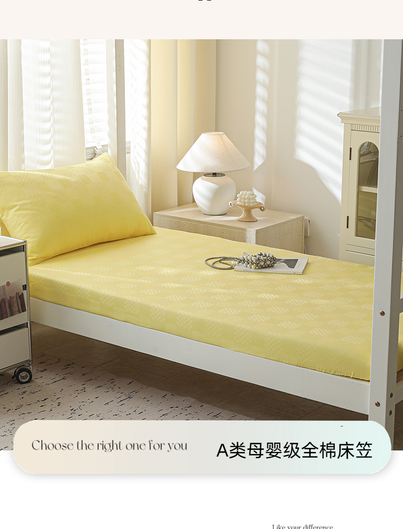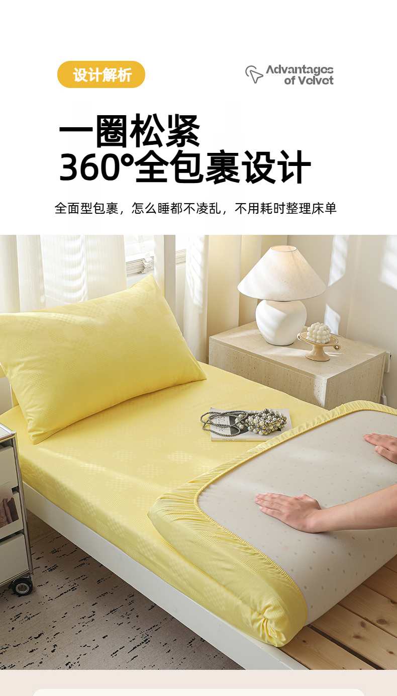 • 91家纺网 家纺一手货源 找家纺 简宜家居(朝初家纺) 2025新款60支贡缎提花A版纯棉床笠 格子-黄