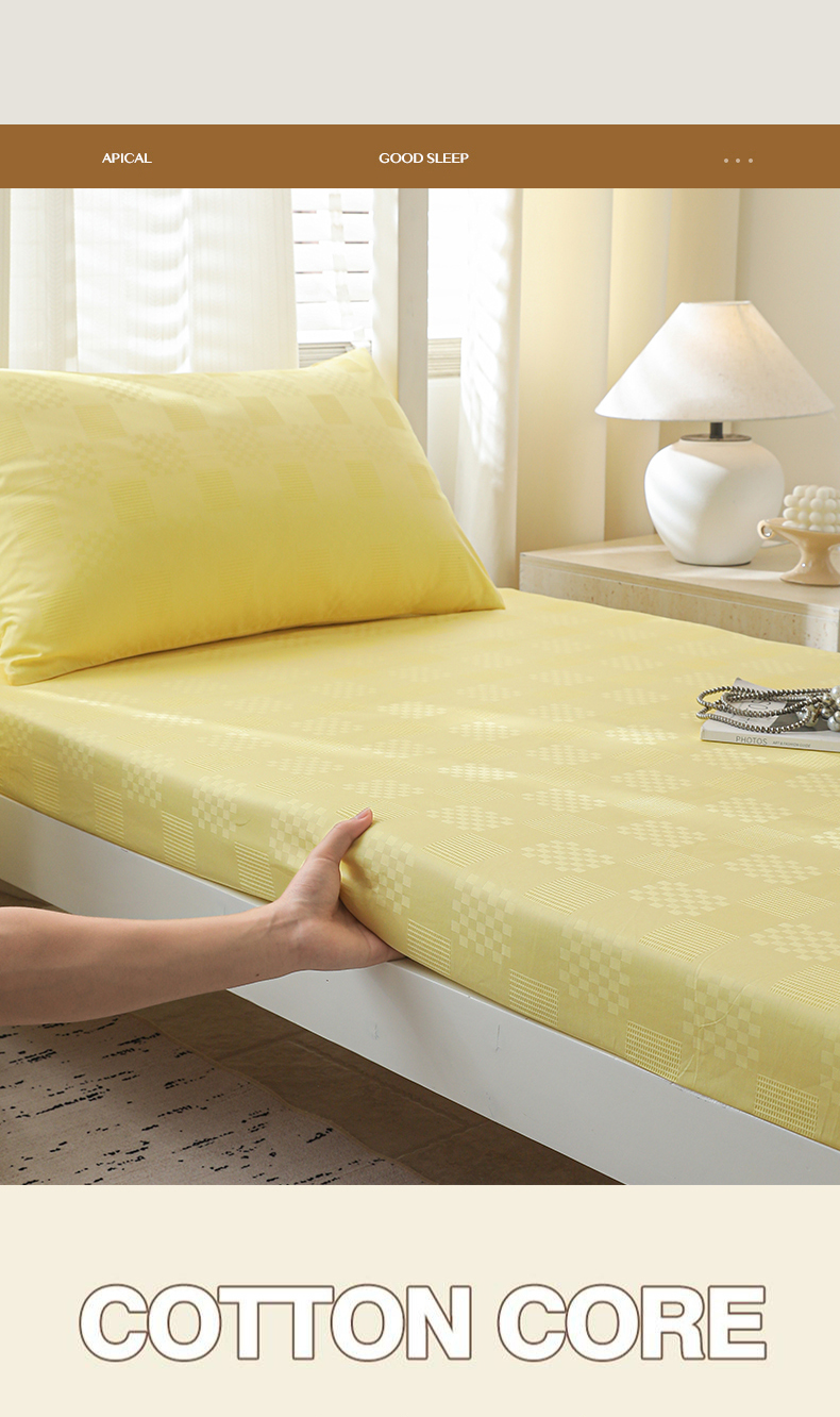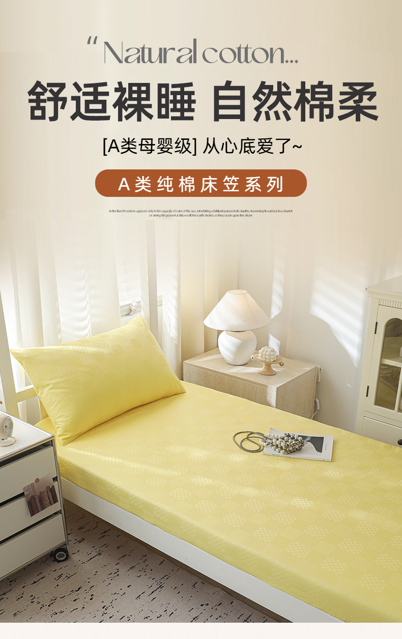 简宜家居(朝初家纺) 2025新款60支贡缎提花A版纯棉床笠 格子-黄