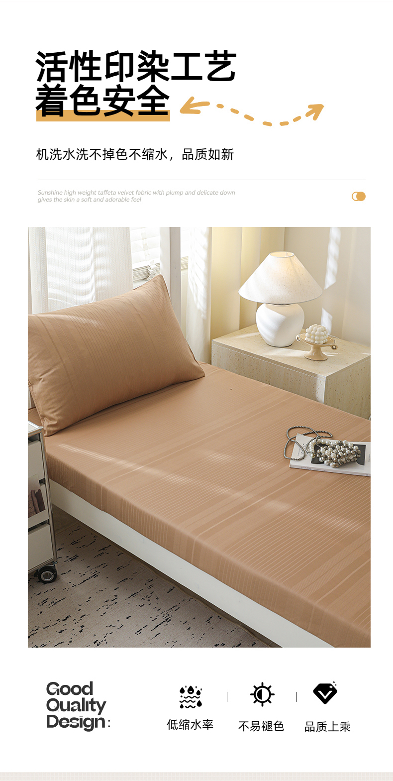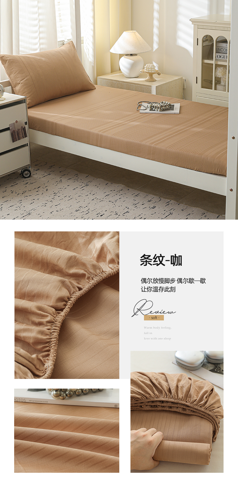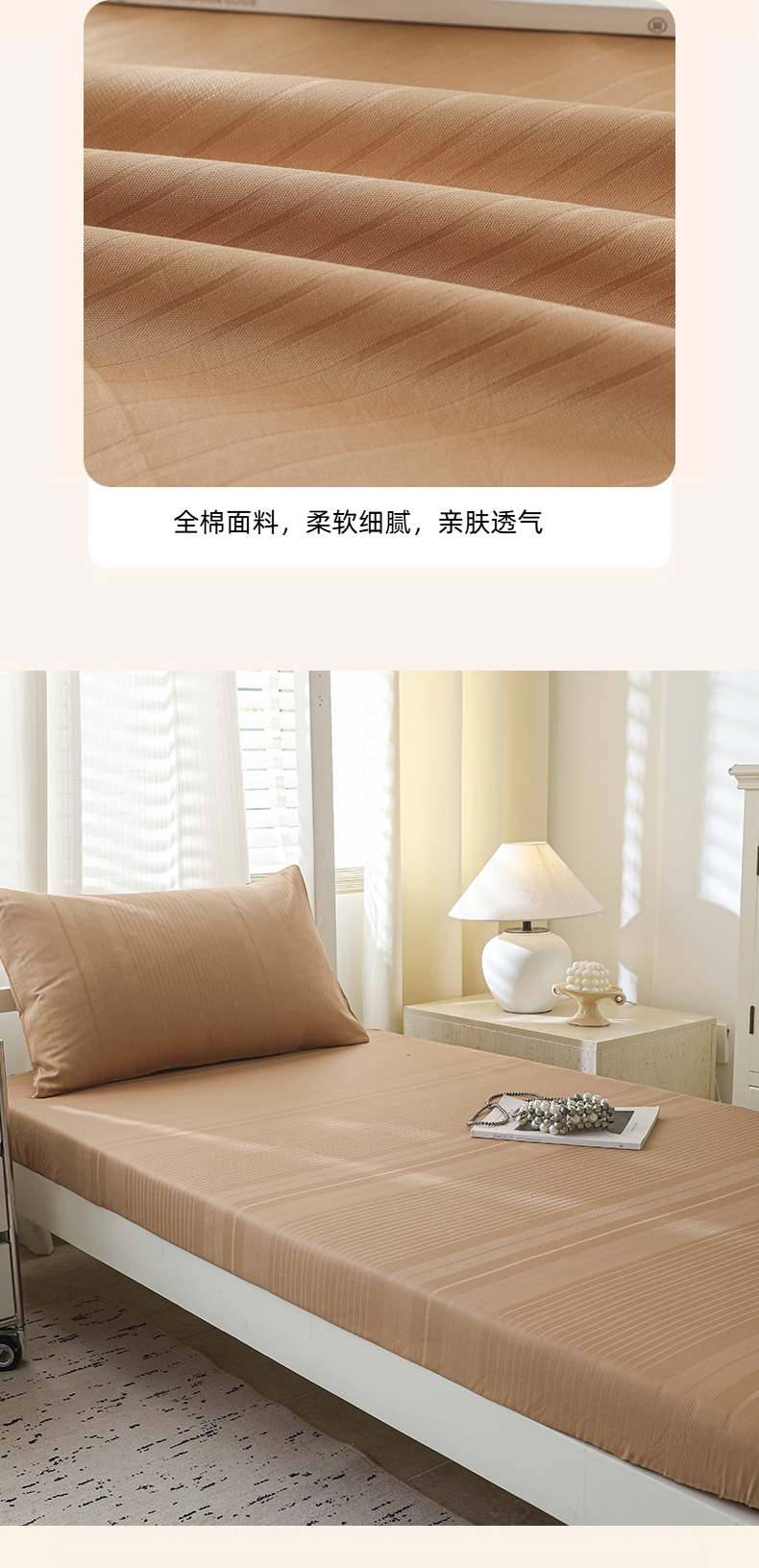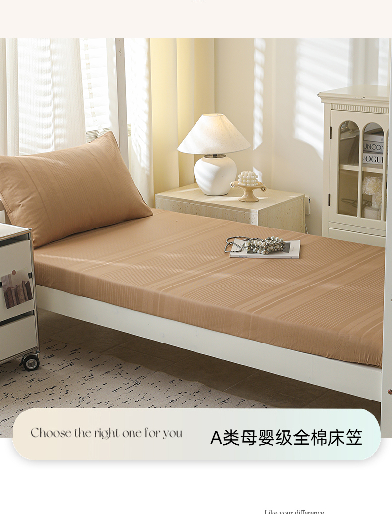 • 91家纺网 家纺一手货源 找家纺 简宜家居(朝初家纺) 2025新款60支贡缎提花A版纯棉床笠 条纹-咖