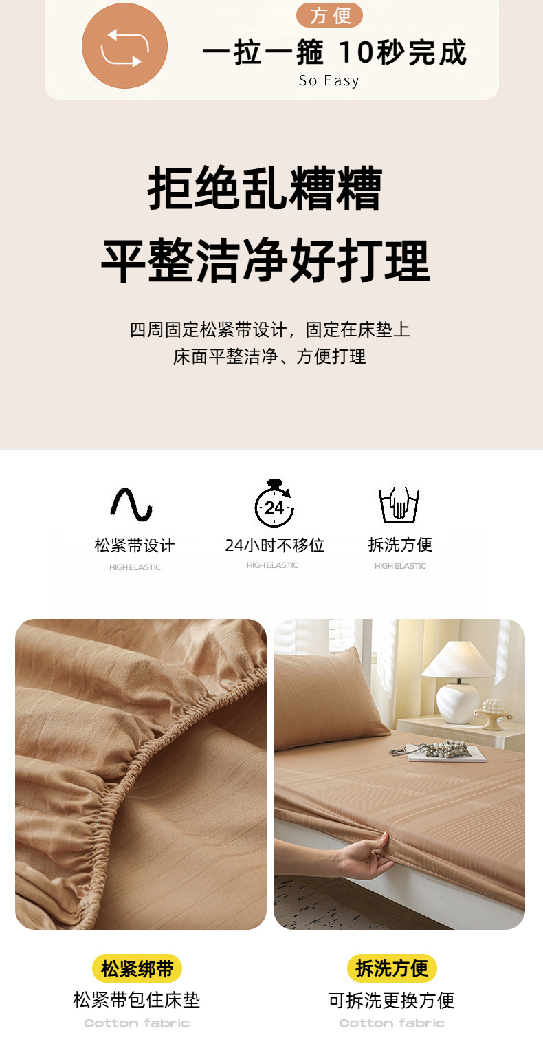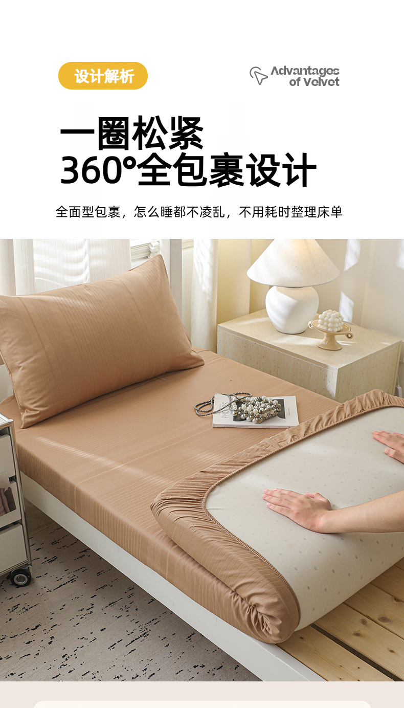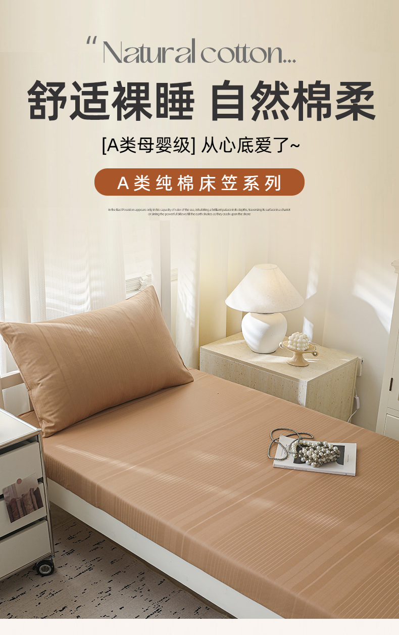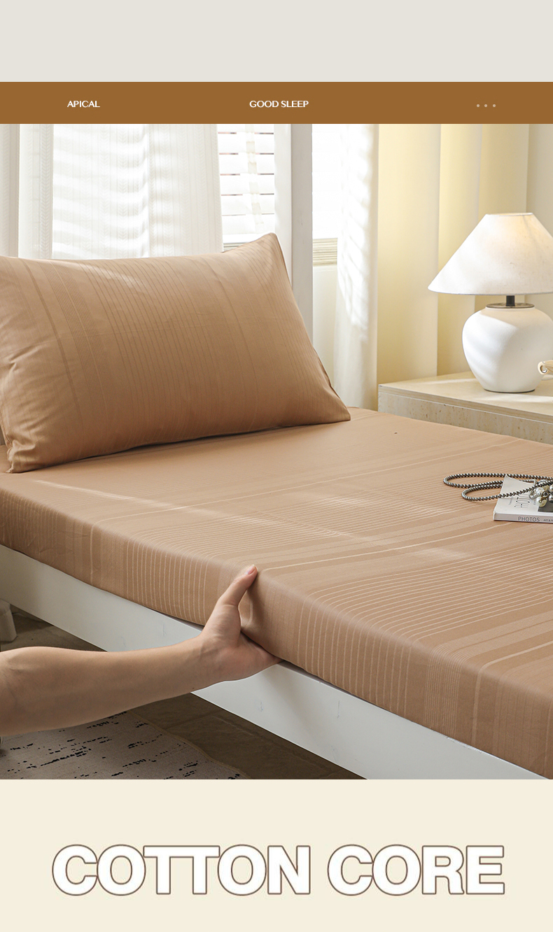 简宜家居(朝初家纺) 2025新款60支贡缎提花A版纯棉床笠 条纹-咖