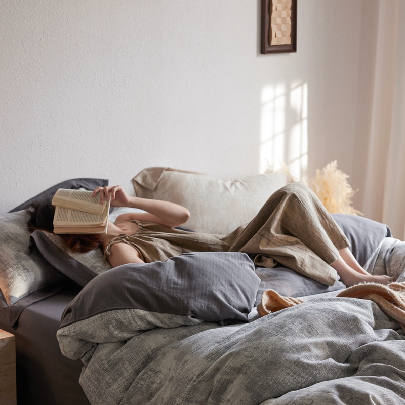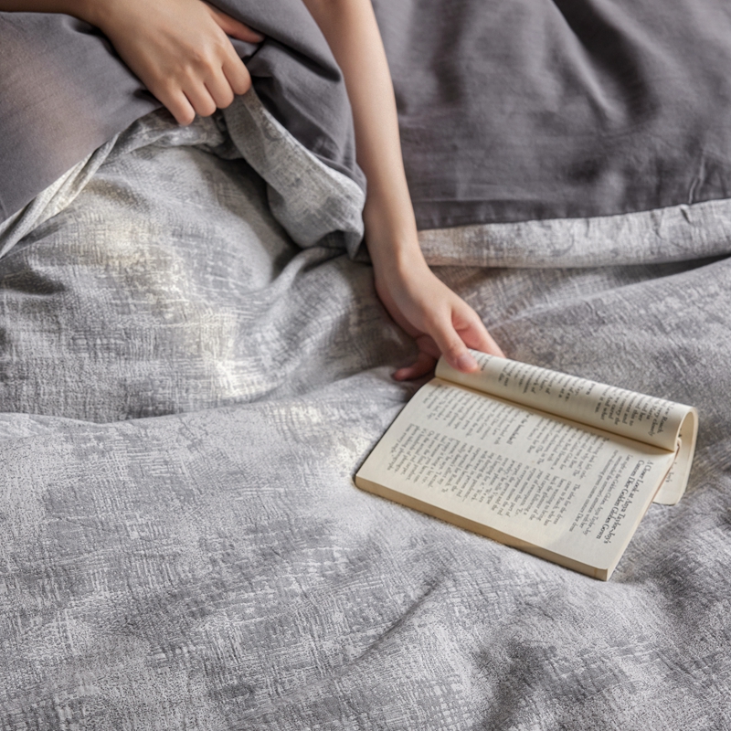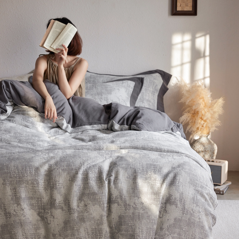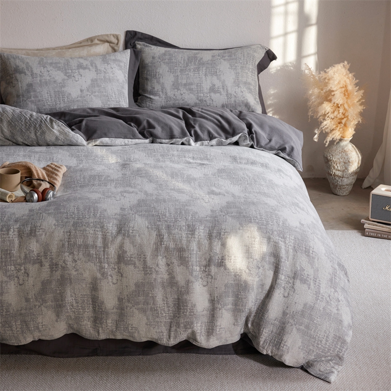 (总)梦享生活家居 2025新款全棉肌理纹提花四件套,灰黑色