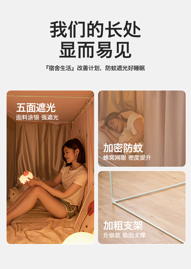 飞轮海蚊帐 2025新款强遮光防蚊学生蚊帐-XZ-99(靠墙帘选配)熊猫宝,熊猫宝