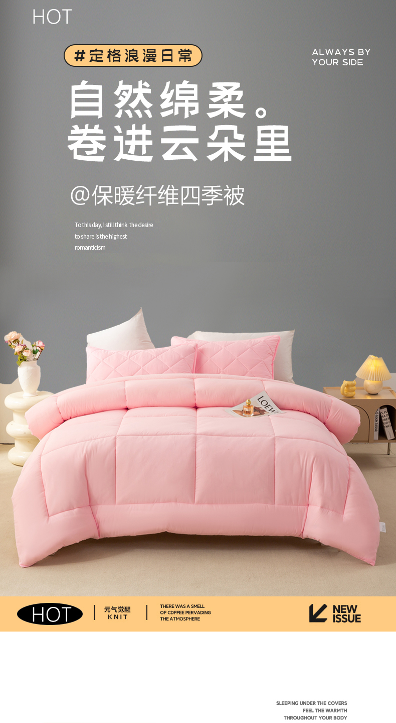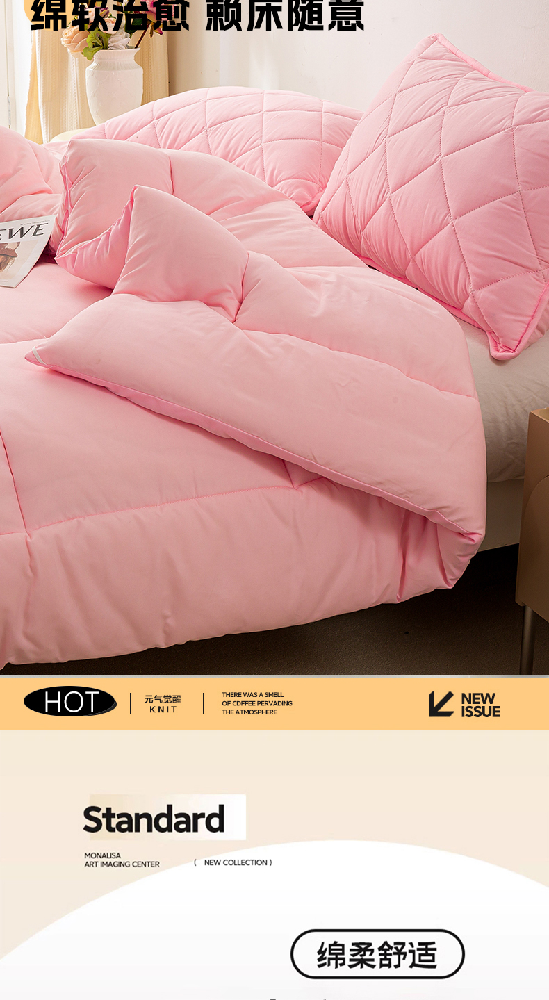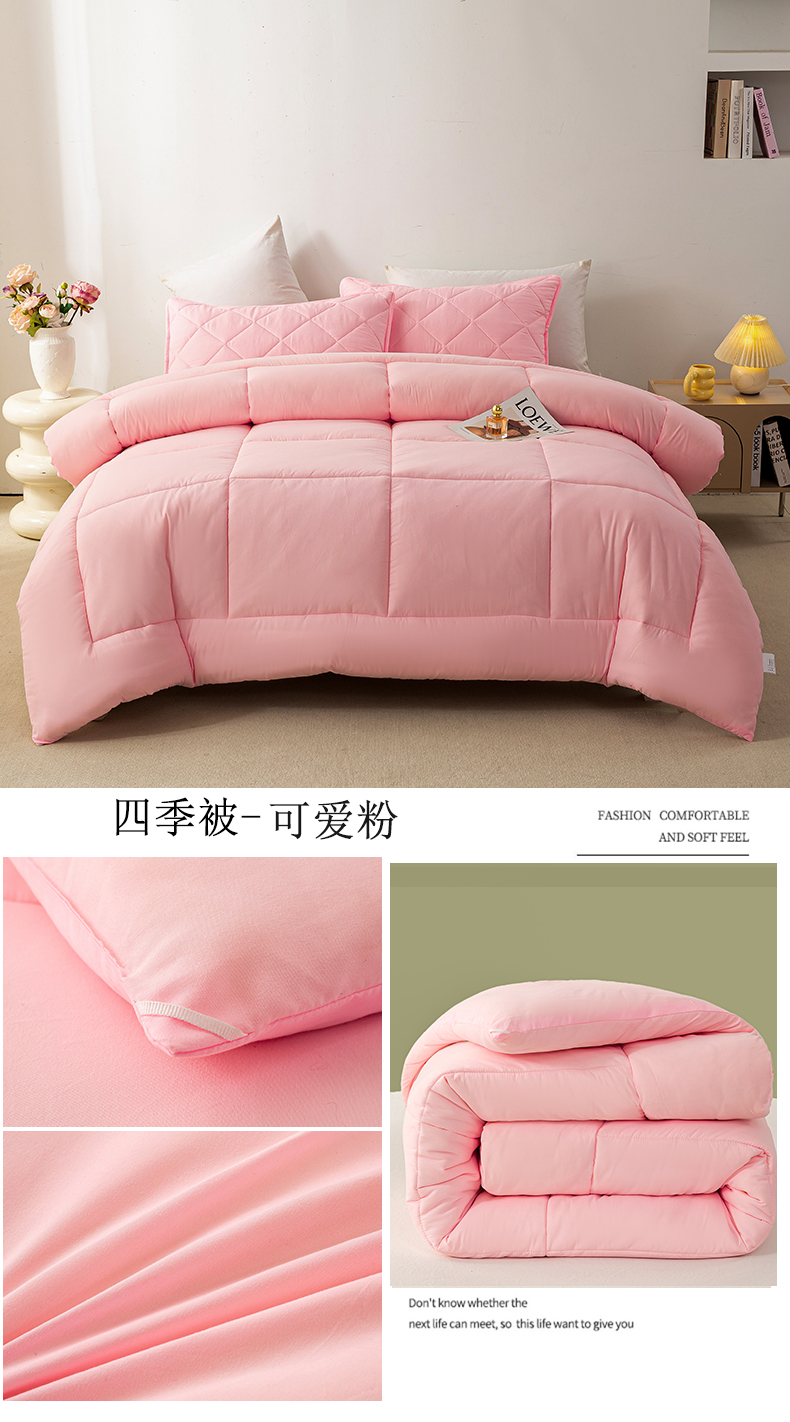 • 91家纺网 家纺一手货源 找家纺 憨豆家纺 2026新款磨毛四季被春秋被丝棉加厚冬被学生宿舍被子酒店宾馆跨境被芯 可爱粉